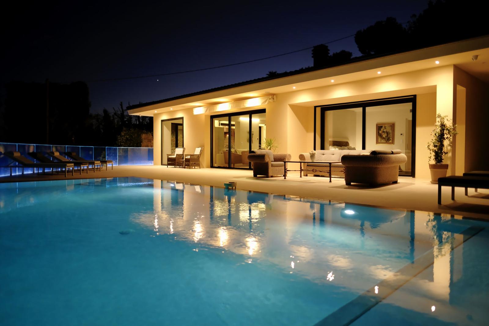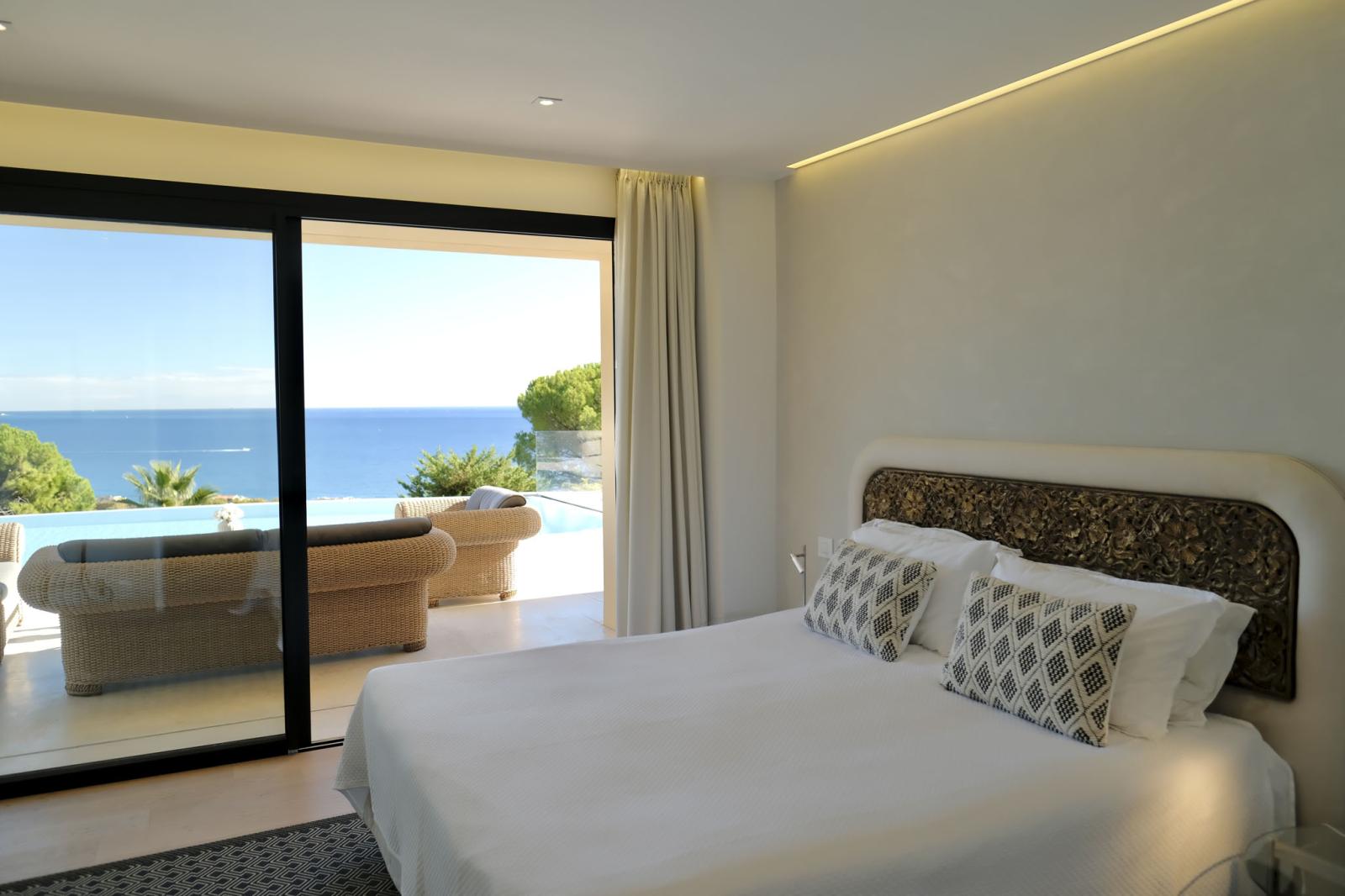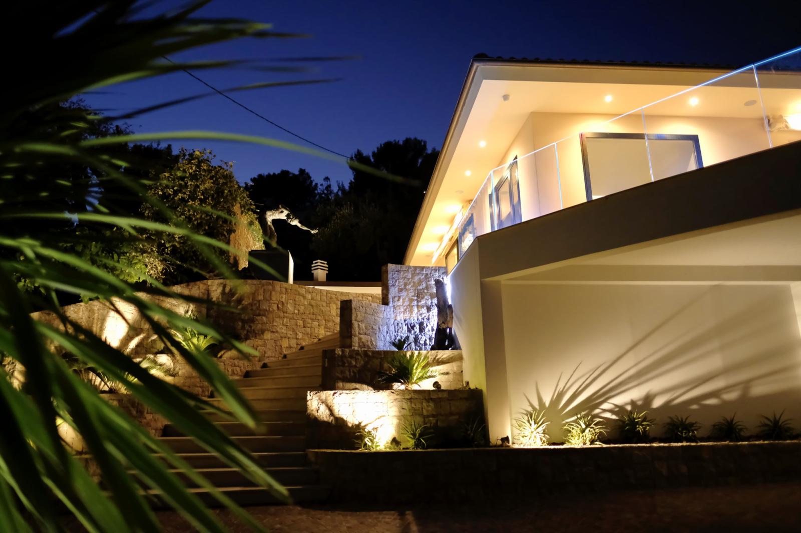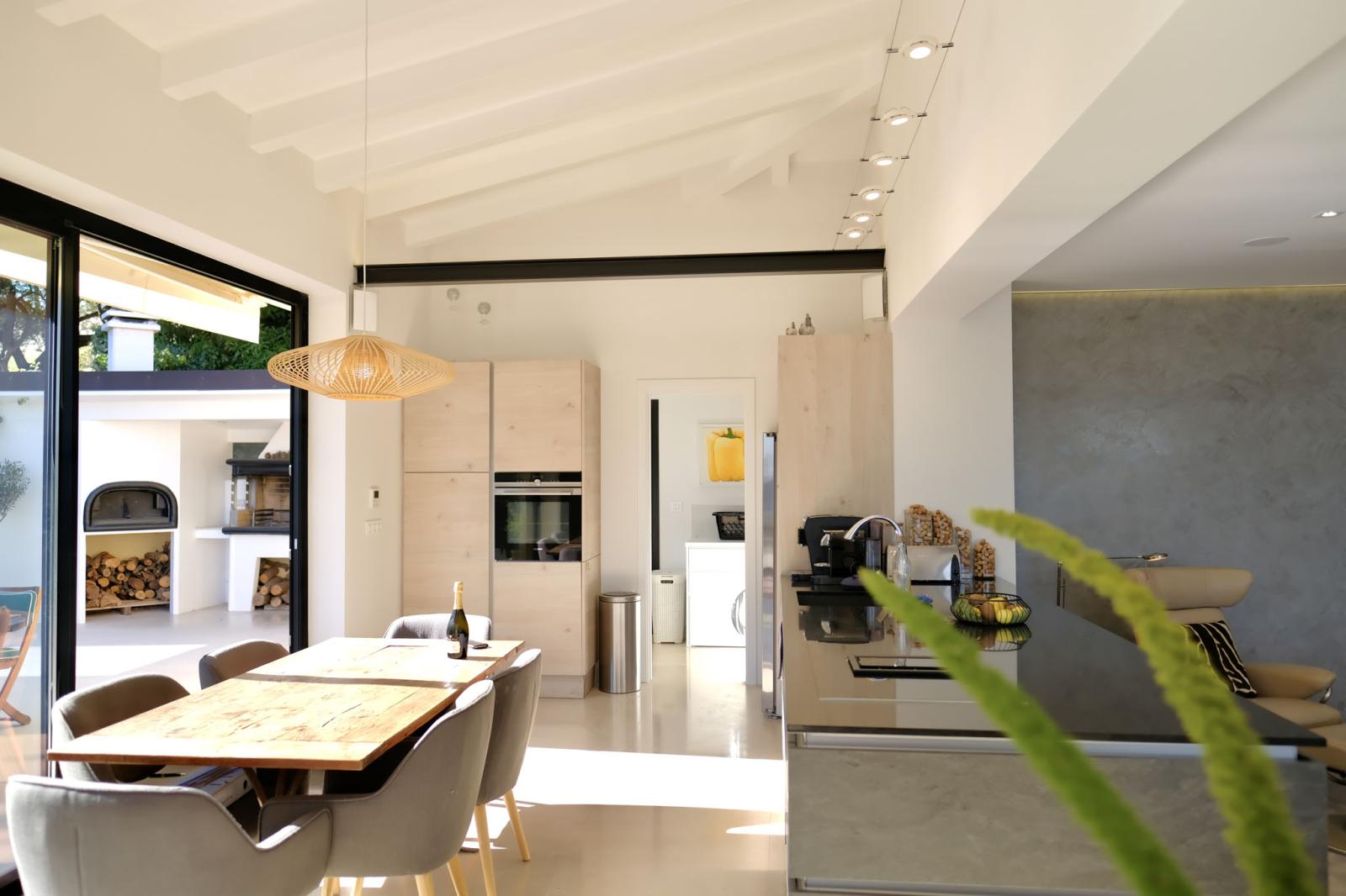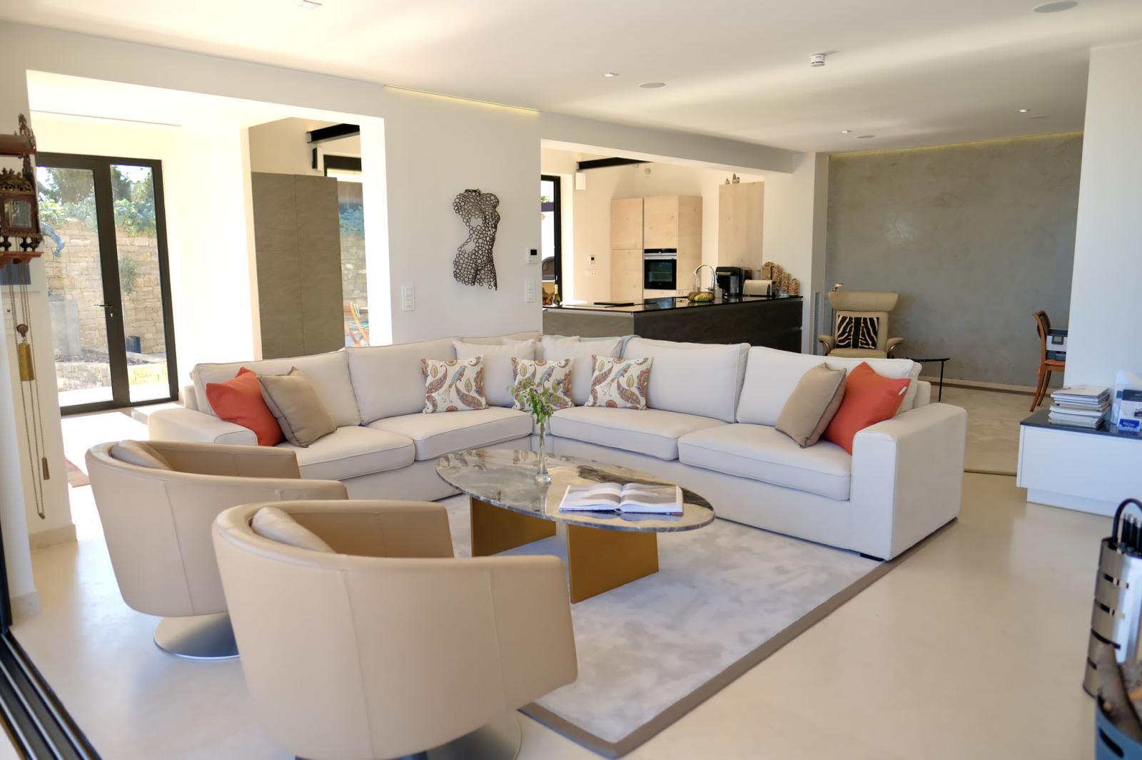 La villa dispose de quatre chambres spacieuses avec salles de douche en marbre clair et de beaux planchers de bois franc. Le salon avec de grandes fenêtres coulissantes dans le mur est ouvert avec une cuisine ultramoderne et bénéficie d’une cheminée créant une atmosphère chaleureuse. Un four à pizza professionnel et un barbecue complètent la salle à manger en plein air. Il est très facile de se détendre près de la piscine sur des lits et des canapés extérieurs donnant sur la mer Méditerranée, la côte italienne et les montagnes.