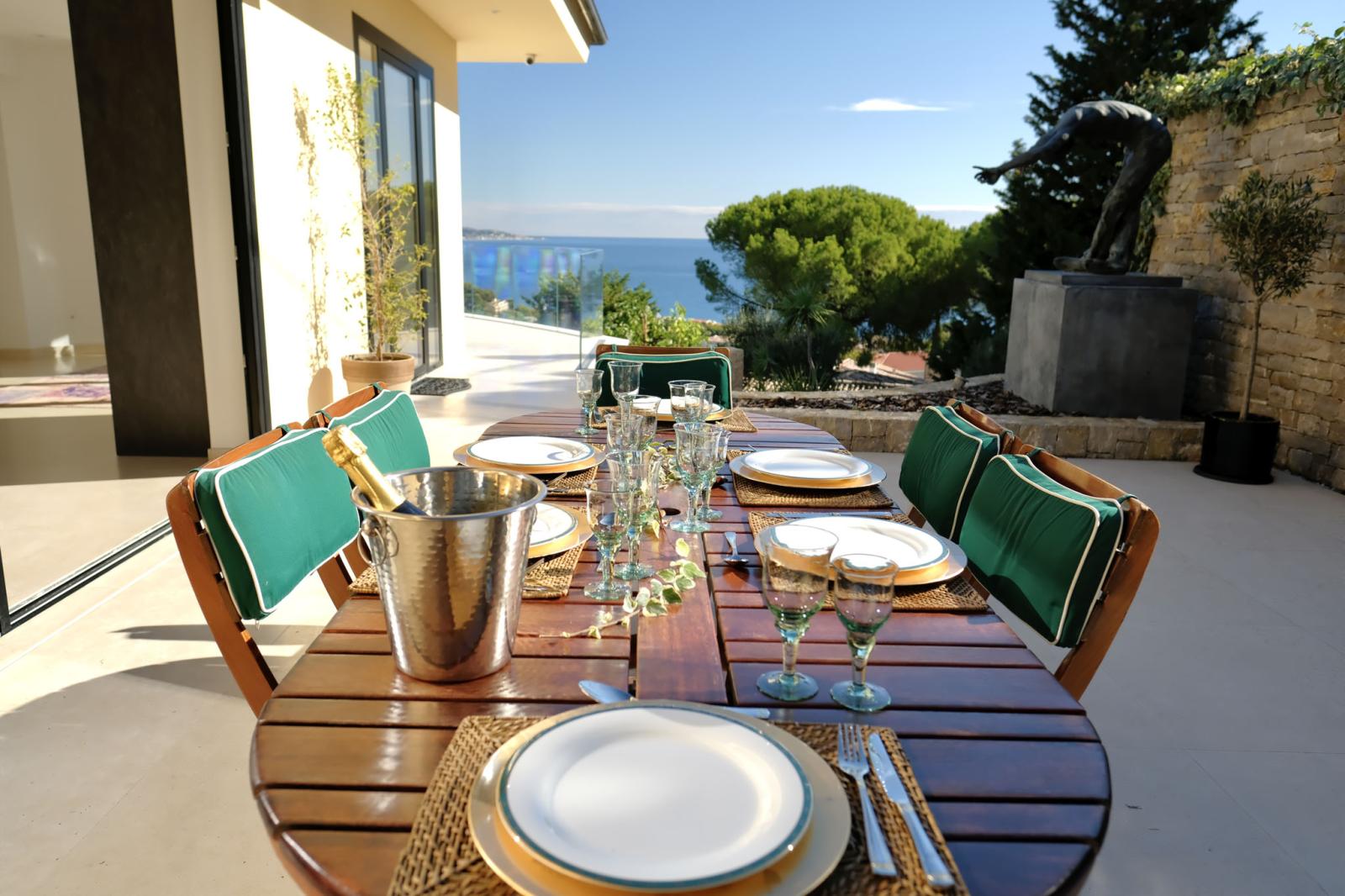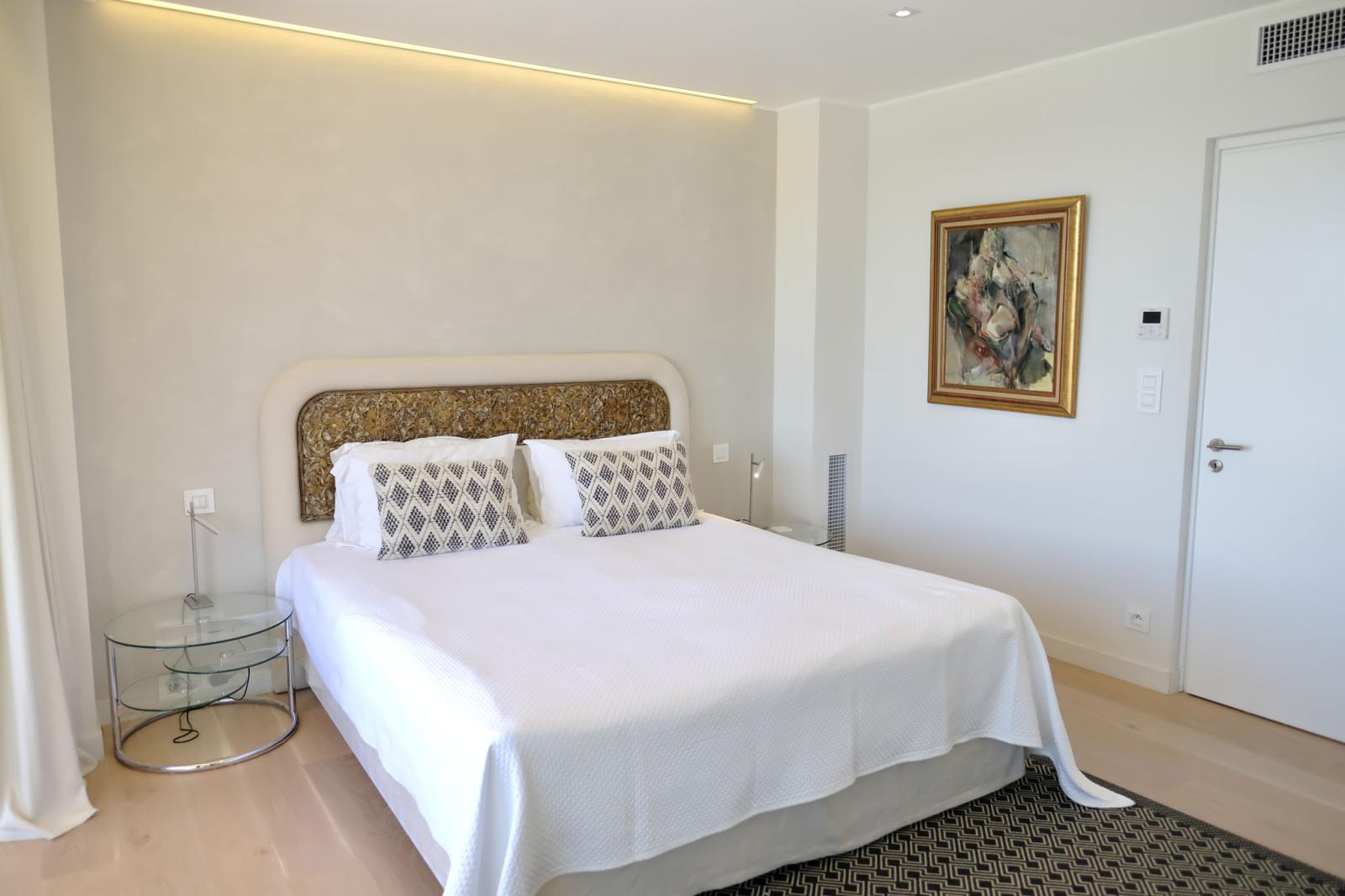 L’appartement offre un vaste séjour baigné de lumière, avec une cuisine ouverte entièrement équipée, idéale pour recevoir. Il dispose de trois chambres en suite, offrant chacune confort et intimité. De grandes baies vitrées s’ouvrent sur un large balcon d’angle, avec une vue spectaculaire sur la Méditerranée.
