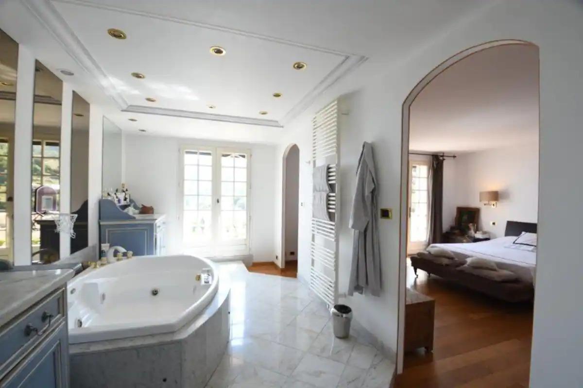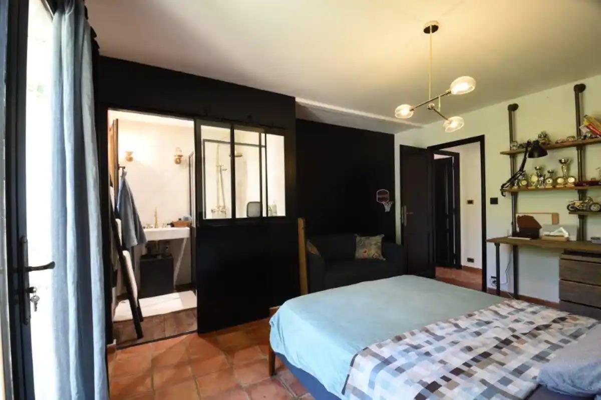 Superbe villa meublée sur 2 niveaux proposant un vaste séjour avec salle à manger et cuisine entièrement équipée, 5 chambres, 4 salles de bains, vastes terrasses. Nombreux rangements. Studio indépendant.