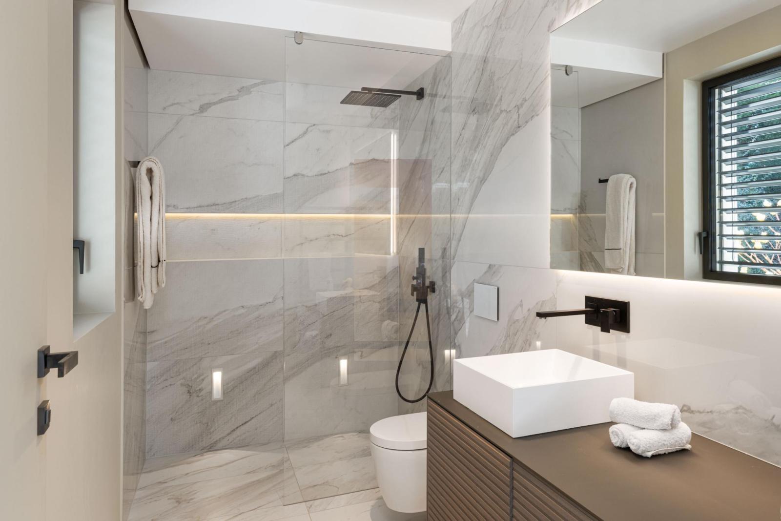Répartie sur deux niveaux autour d’un patio central, la maison propose des espaces généreux et fonctionnels : Rez-de-chaussée inférieur : une chambre avec salle de bains attenante, une salle de sport avec douche, un espace bien-être comprenant un jacuzzi et un spa, une superbe cave à vin, un home cinéma, ainsi qu’un accès direct au garage souterrain. Rez-de-chaussée supérieur : une cuisine ouverte avec coin repas, un vaste séjour en double hauteur baigné de lumière, ainsi que deux chambres supplémentaires avec leur salles- de-bains privatives.