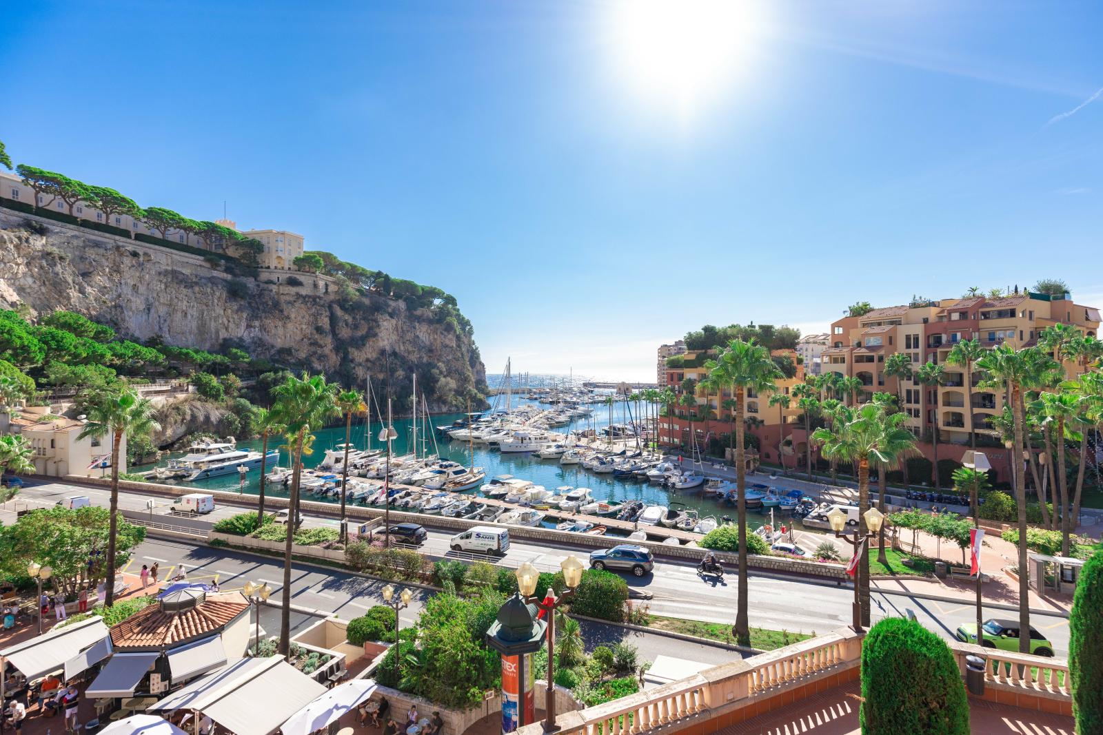 Superbe deux pièces entièrement rénové avec des matériaux haut de gamme, offrant une magnifique terrasse avec vue imprenable sur le Port Hercule, la Méditerranée et le Rocher de Monaco.