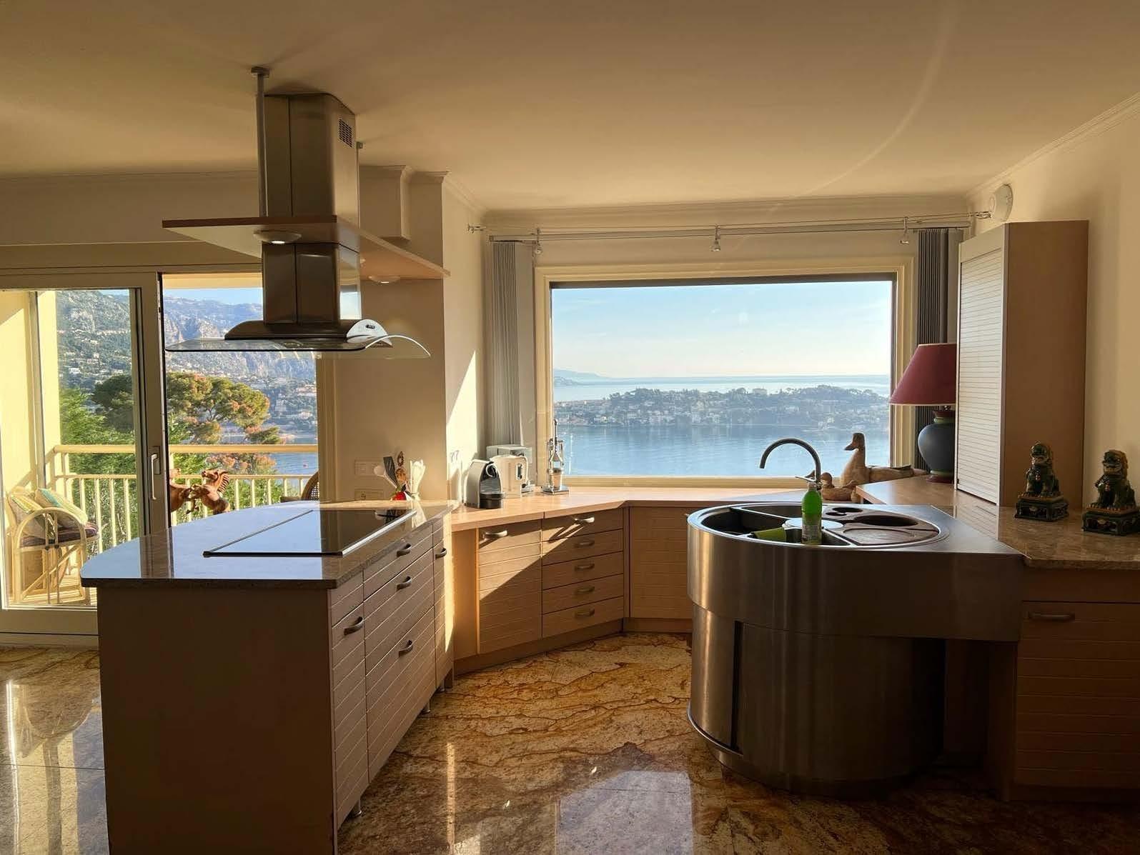 L'appartement dispose d’une vue mer spectaculaire, s'étendant de la Pointe de Cap Martin à gauche jusqu’au Musée Océanographique à droite.