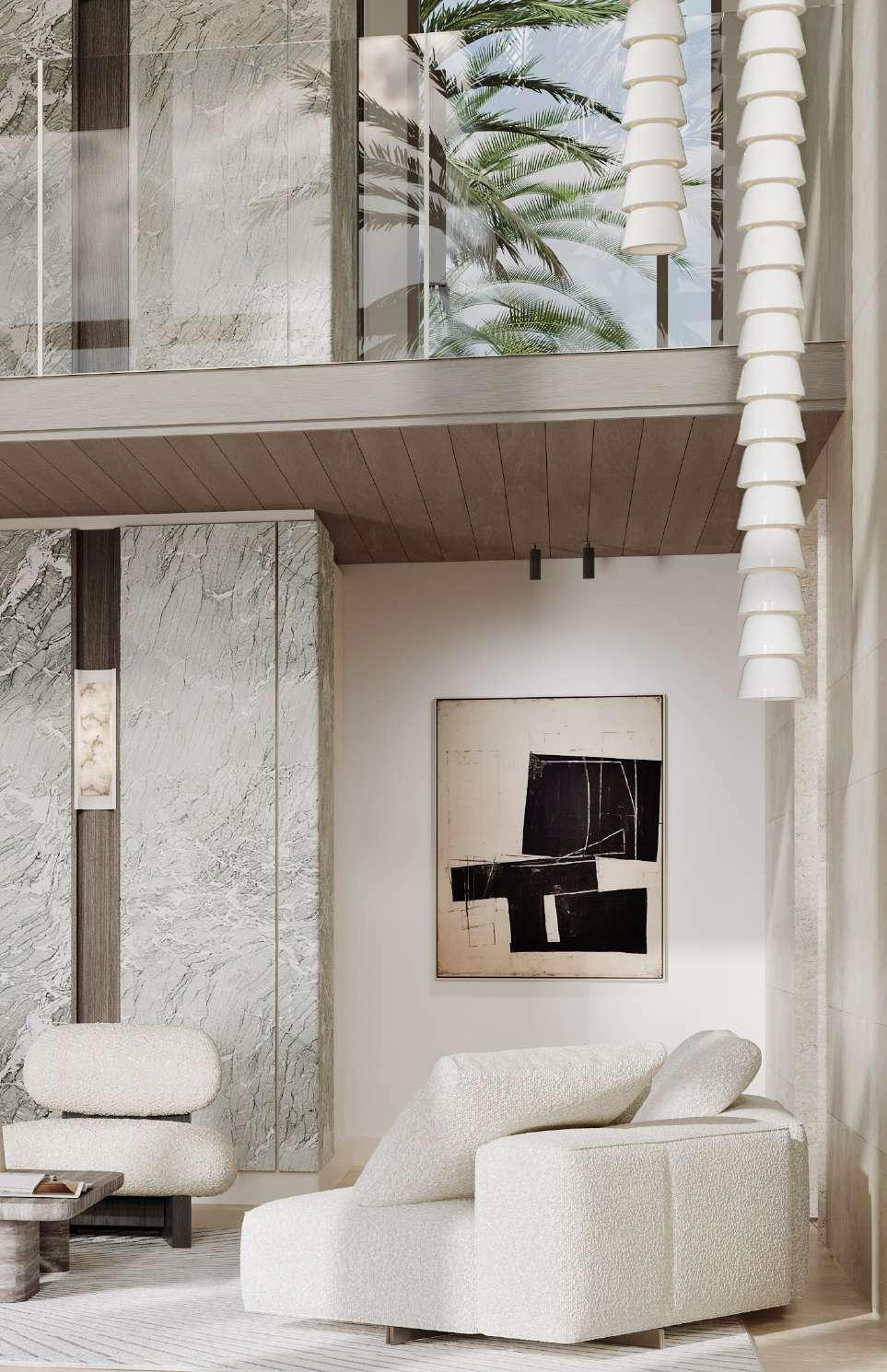Réparti sur les 2ème et 3ème étages, le duplex est intelligemment organisé pour offrir de l’intimité aux chambres tout en maximisant l’espace et les vues dans les espaces de vie :