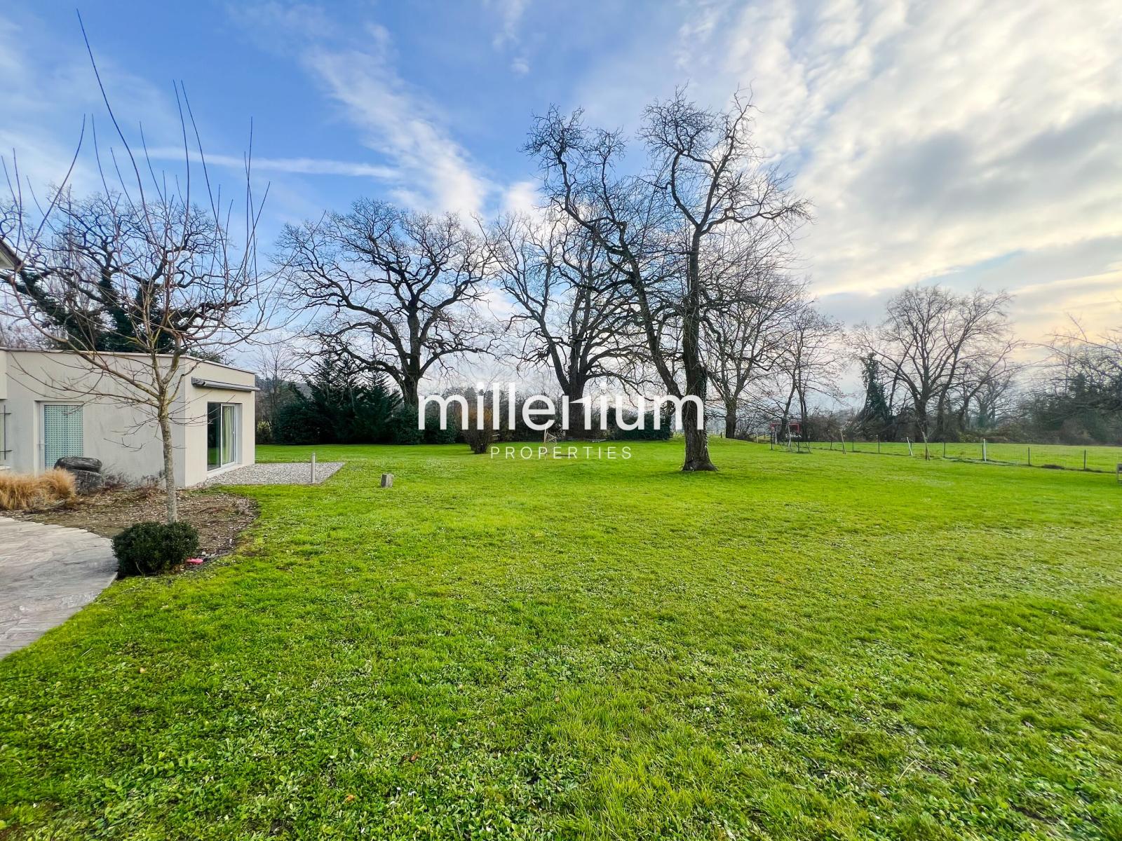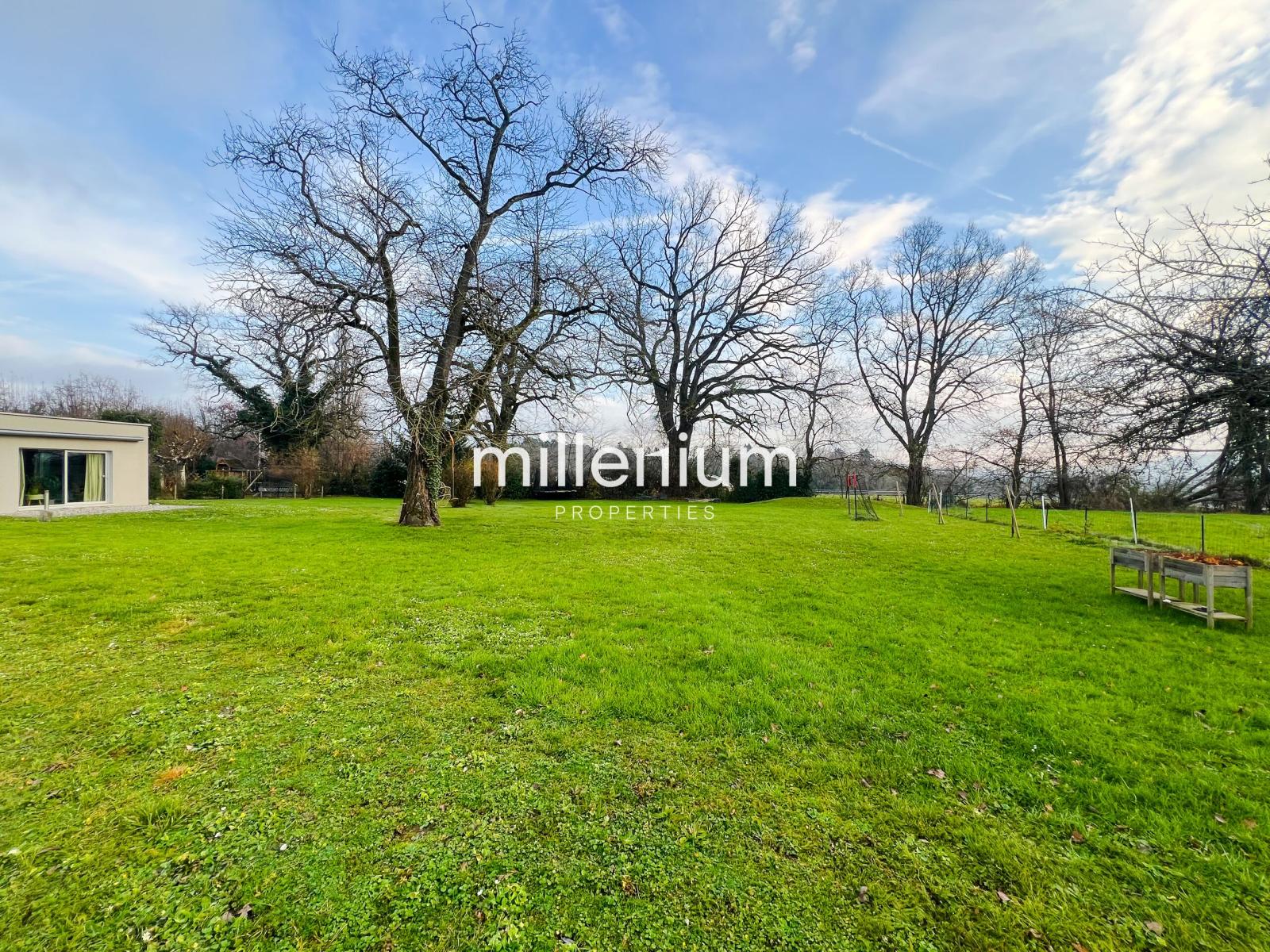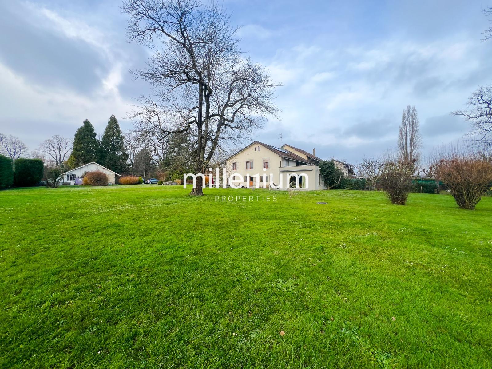 Grande villa champêtre de 205 m2, située dans un quartier calme à Choulex, avec vue imprenable sur le jardin de 2000 m2 entièrement clôturé.