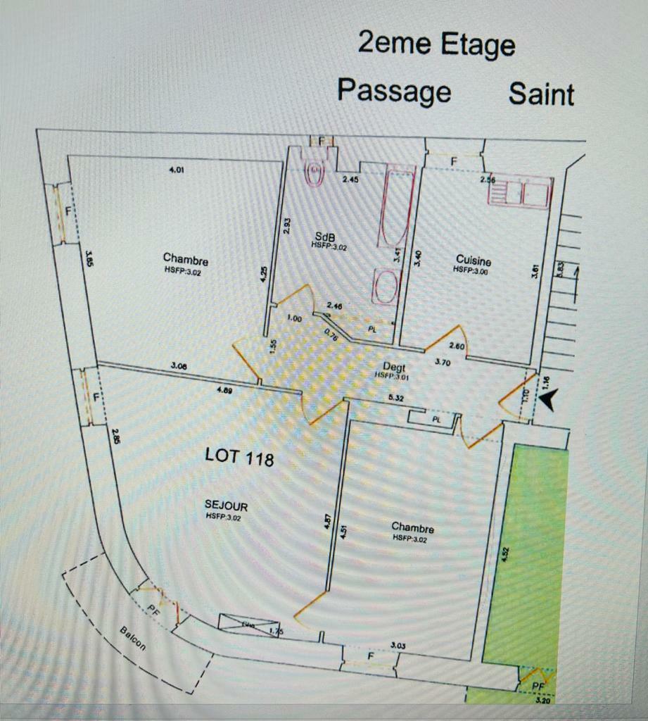 Dans un quartier central et proche de toutes les commodités 3 pièces situé au 2ème étage d'un immeuble bourgeois sans ascenseur.