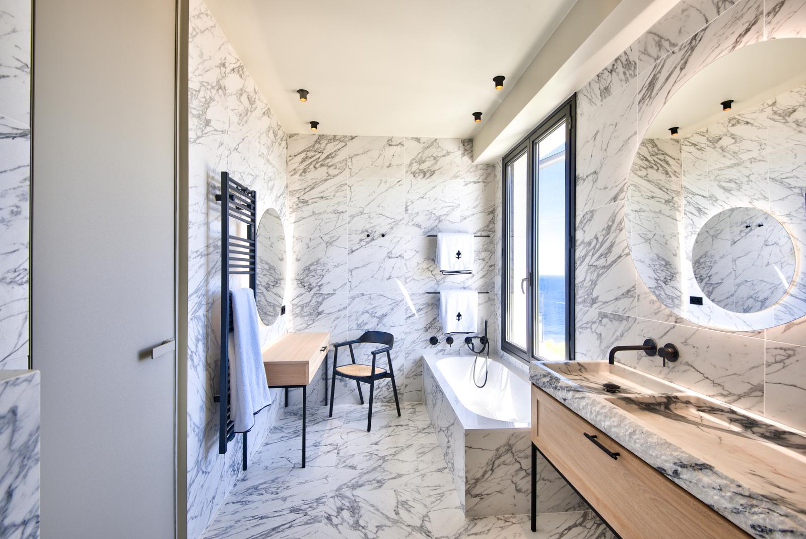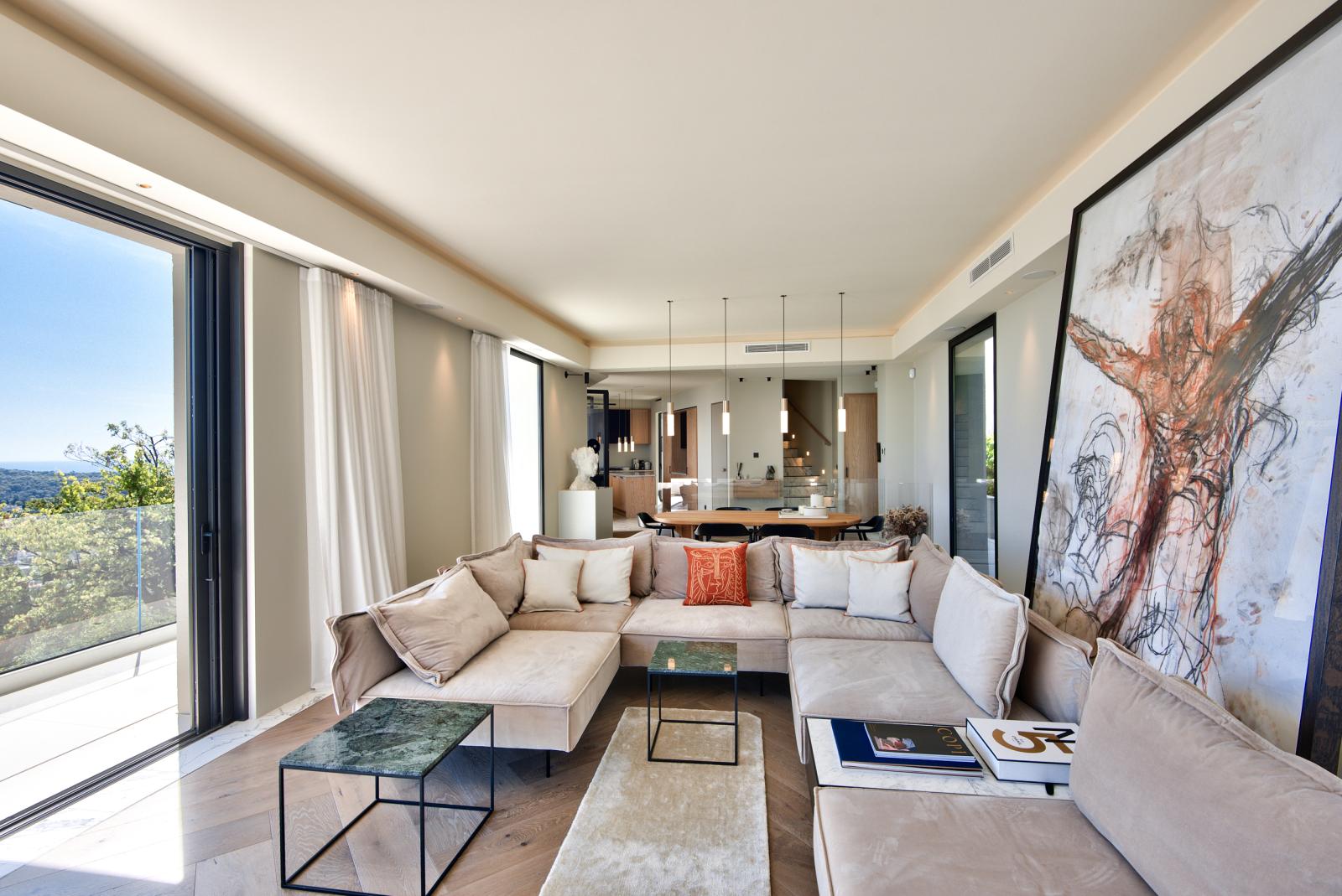 Une sublime terrasse de 140 m² passant par les escaliers intérieures offre une incroyable vue panoramique ainsi qu'une cuisine extérieur.