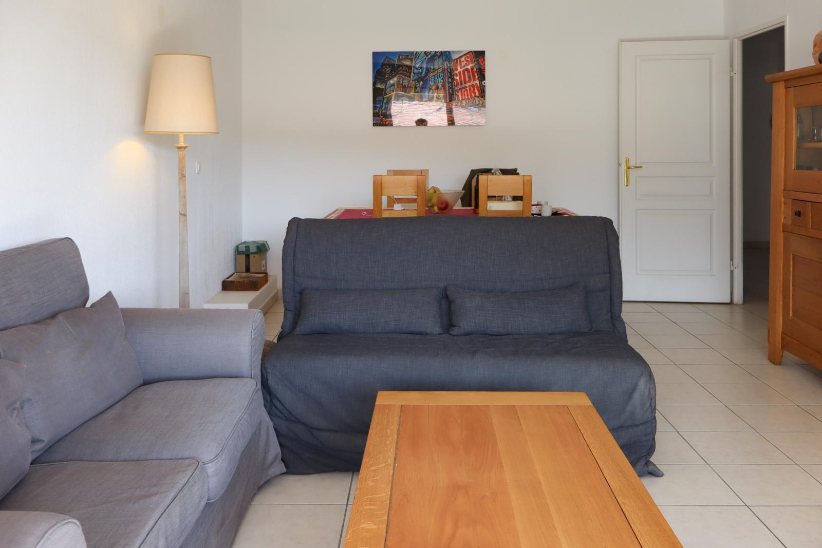 Ce bien traversant bénéficie d’une belle luminosité . Il se compose d’un hall d’entrée ouvrant sur un séjour spacieux, d’une cuisine indépendante, de deux chambres confortables, d’une salle de bain, de WC séparés, d’un dégagement avec rangements et de nombreux placards intégrés.