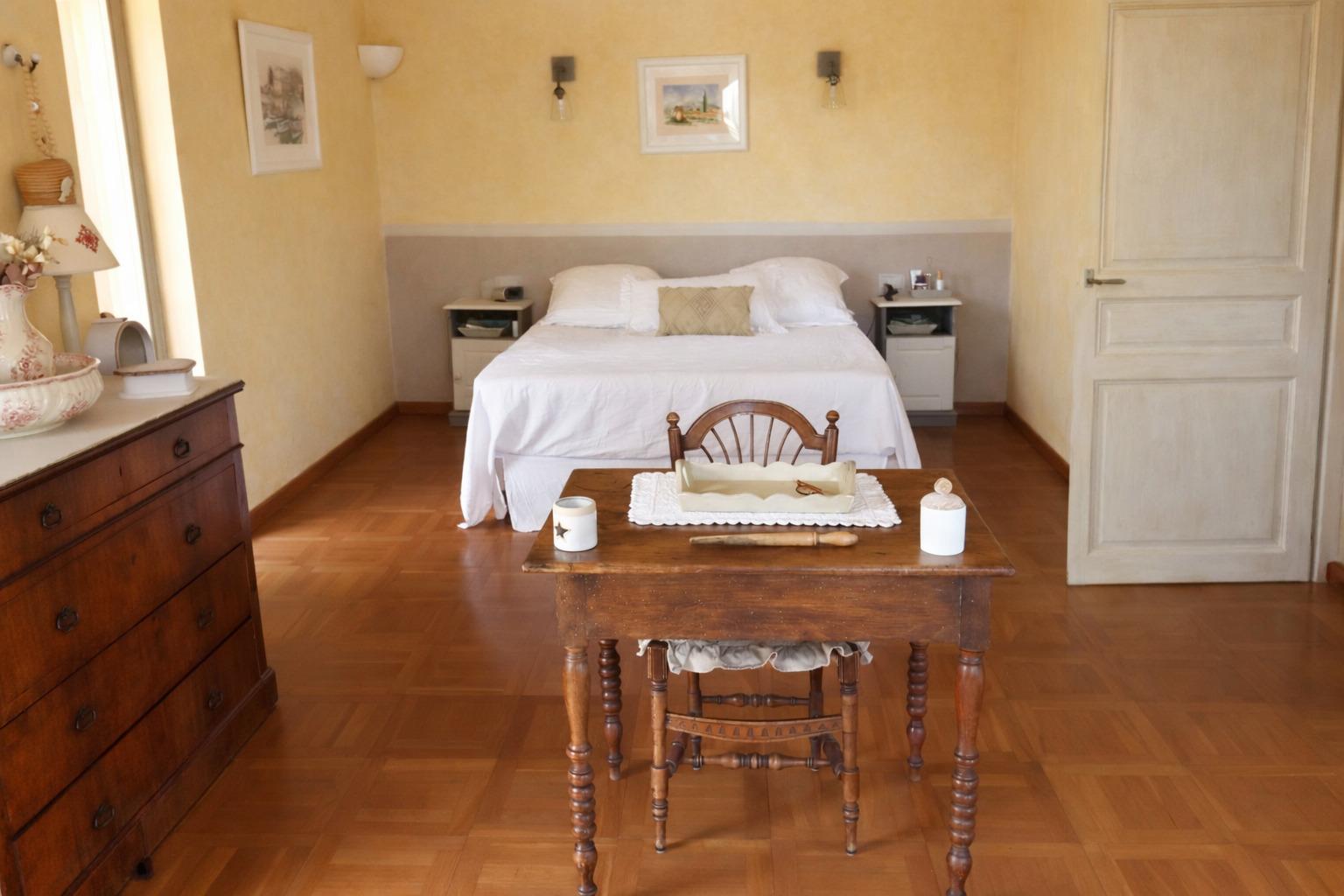 À l'étage, un bureau et une suite parentale avec salle de bains privative souvrent sur une terrasse. Deux greniers offrent des volumes de rangement supplémentaires.