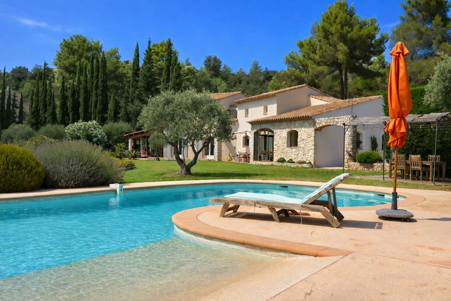 - Une piscine avec son pool house équipé (salle d'eau, cuisine d'été et four à pizza) et un espace repas ombragé.