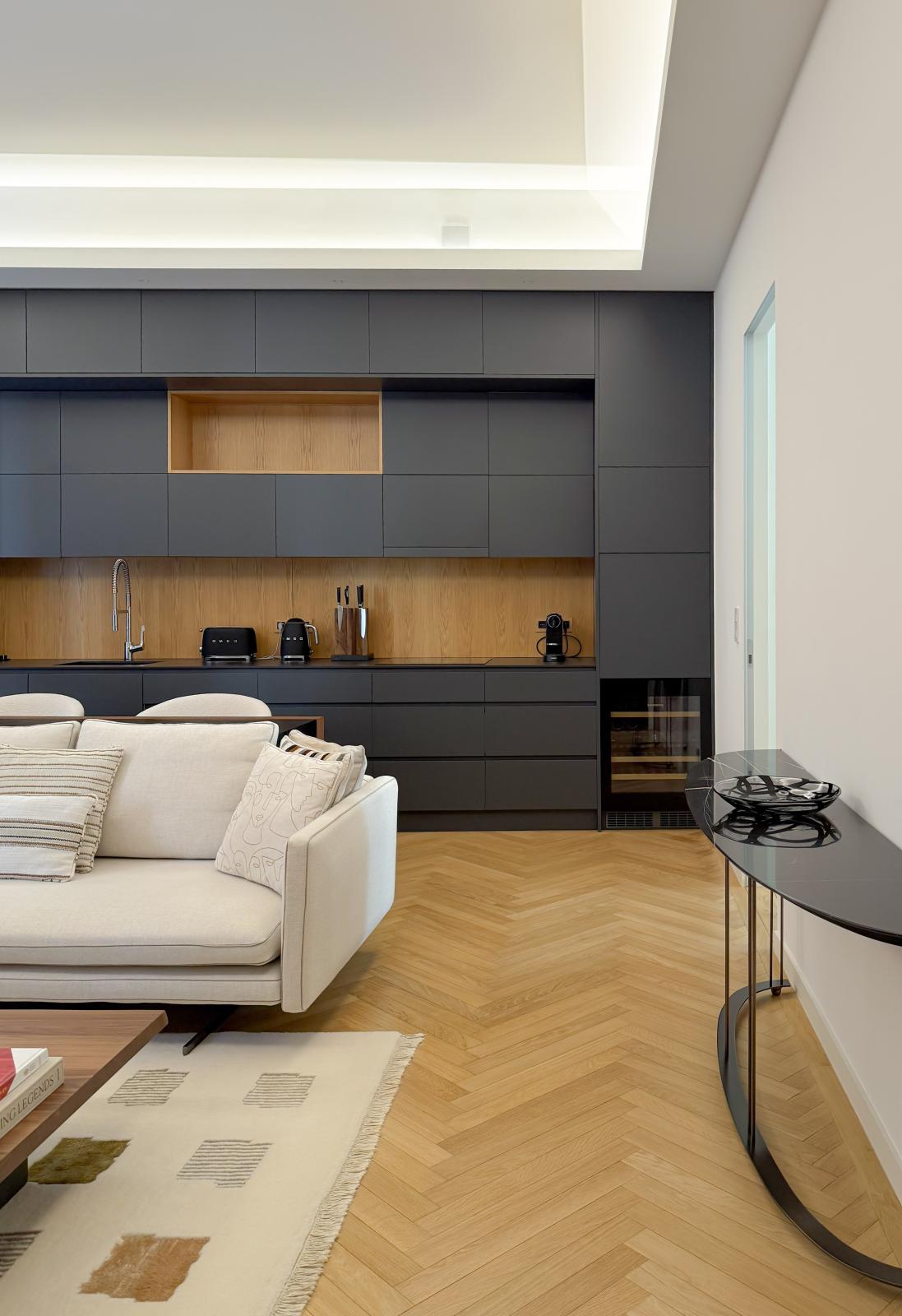 Il se compose d'un large séjour, d'une cuisine, de 2 chambres avec salle de bains et une salle de douche, ainsi qu'un bureau et une buanderie.