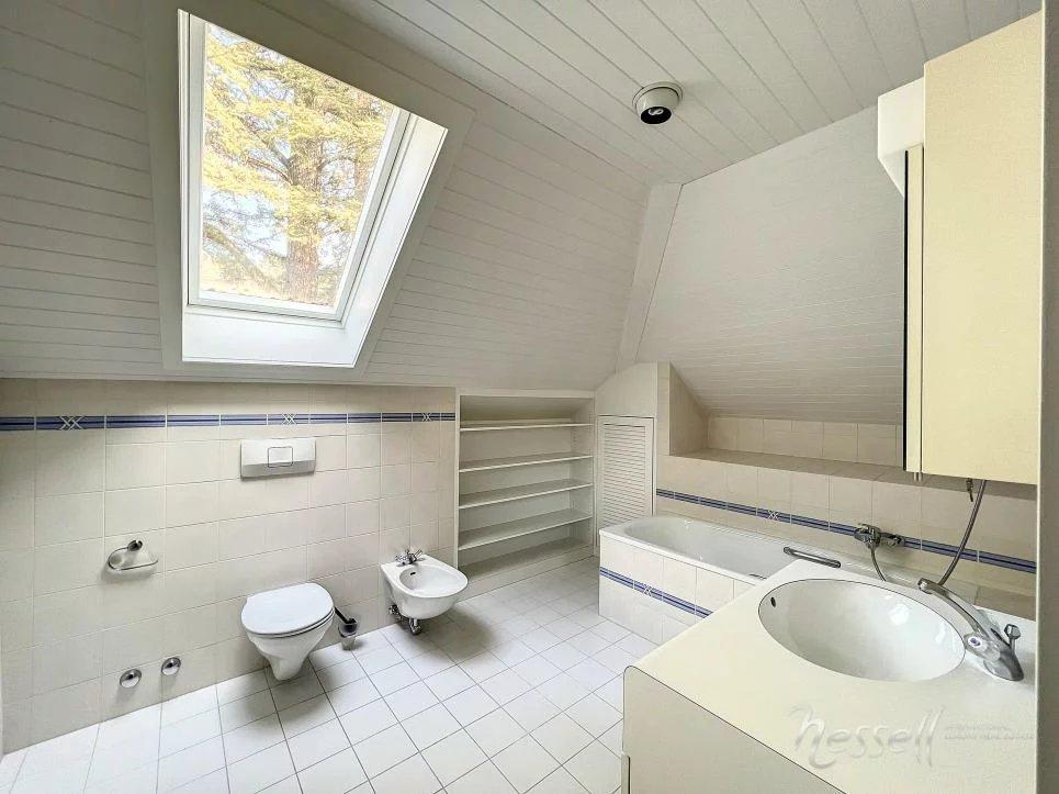 Occupant le 2ème étage d'une élégante maison de maître, cet appartement spacieux de 3 pièces comprend un grand hall d'entrée, un grand séjour avec salle à manger, une cuisine entièrement équipée et semi ouverte, une chambre principale avec sa salle de bain attenante, ainsi qu'une seconde chambre disposant de sa propre salle d'eau et de toilettes pour les invités.
