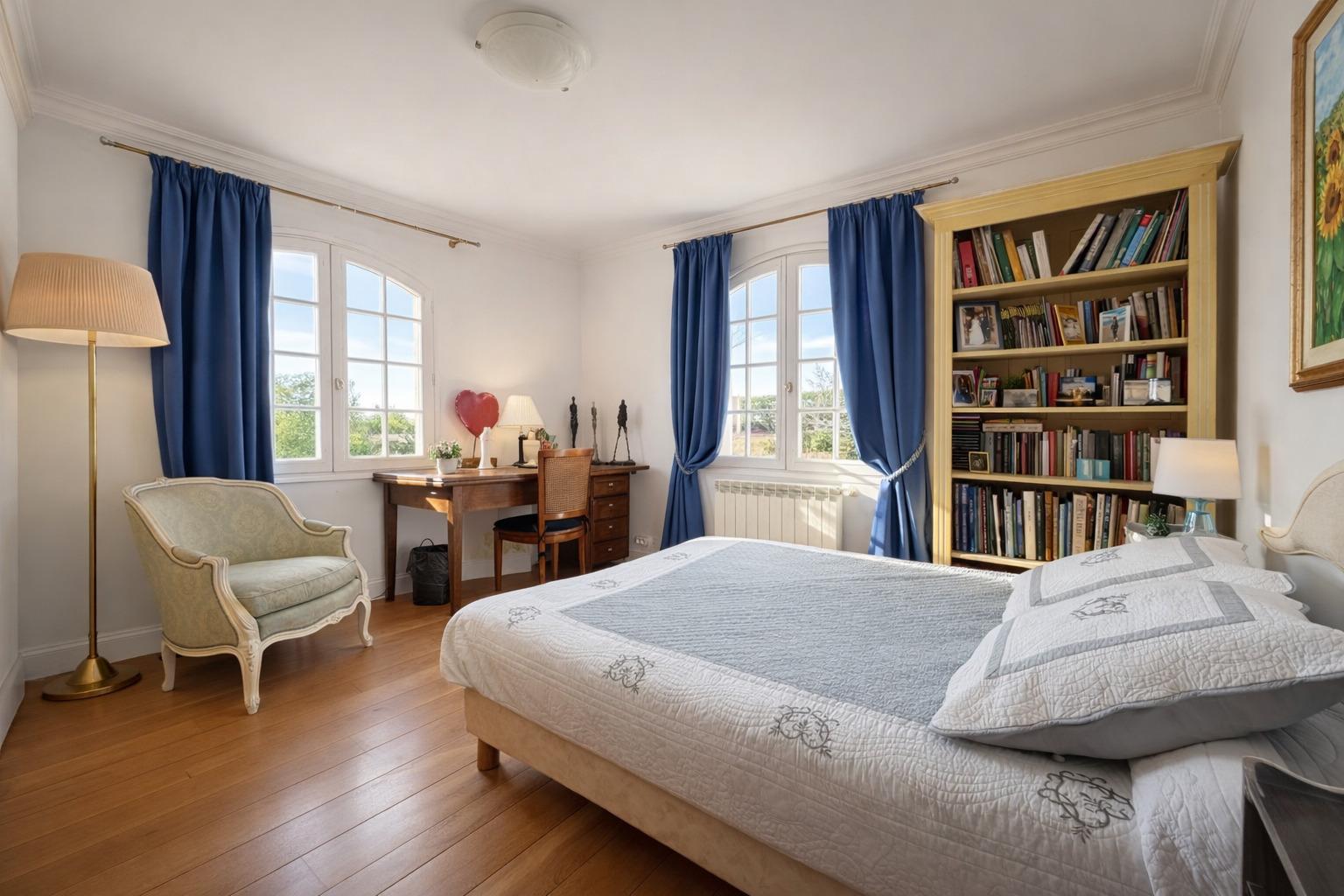 L’espace nuit accueille cinq chambres, trois salles de bains, dressings et rangements, complété par un logement indépendant pour le personnel.