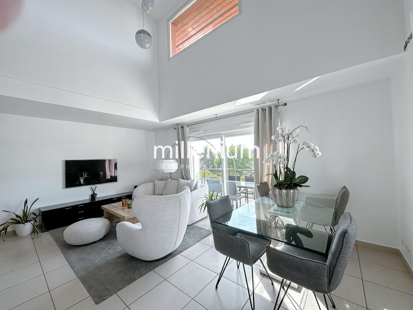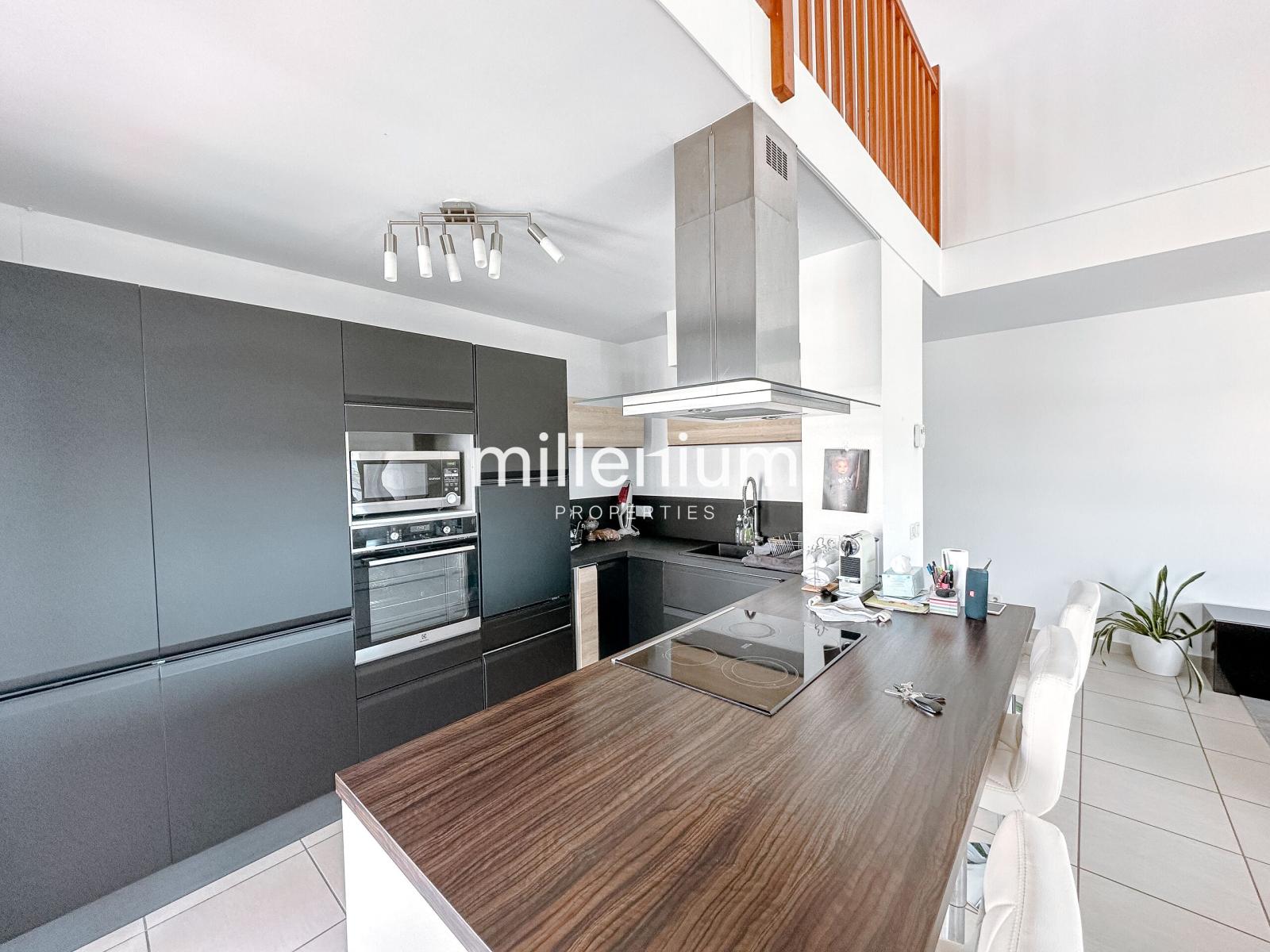 -Une cuisine équipée ouverte sur un lumineux séjour cathédrale donnant accès à une terrasse exposée Ouest et un balcon côté cuisine.