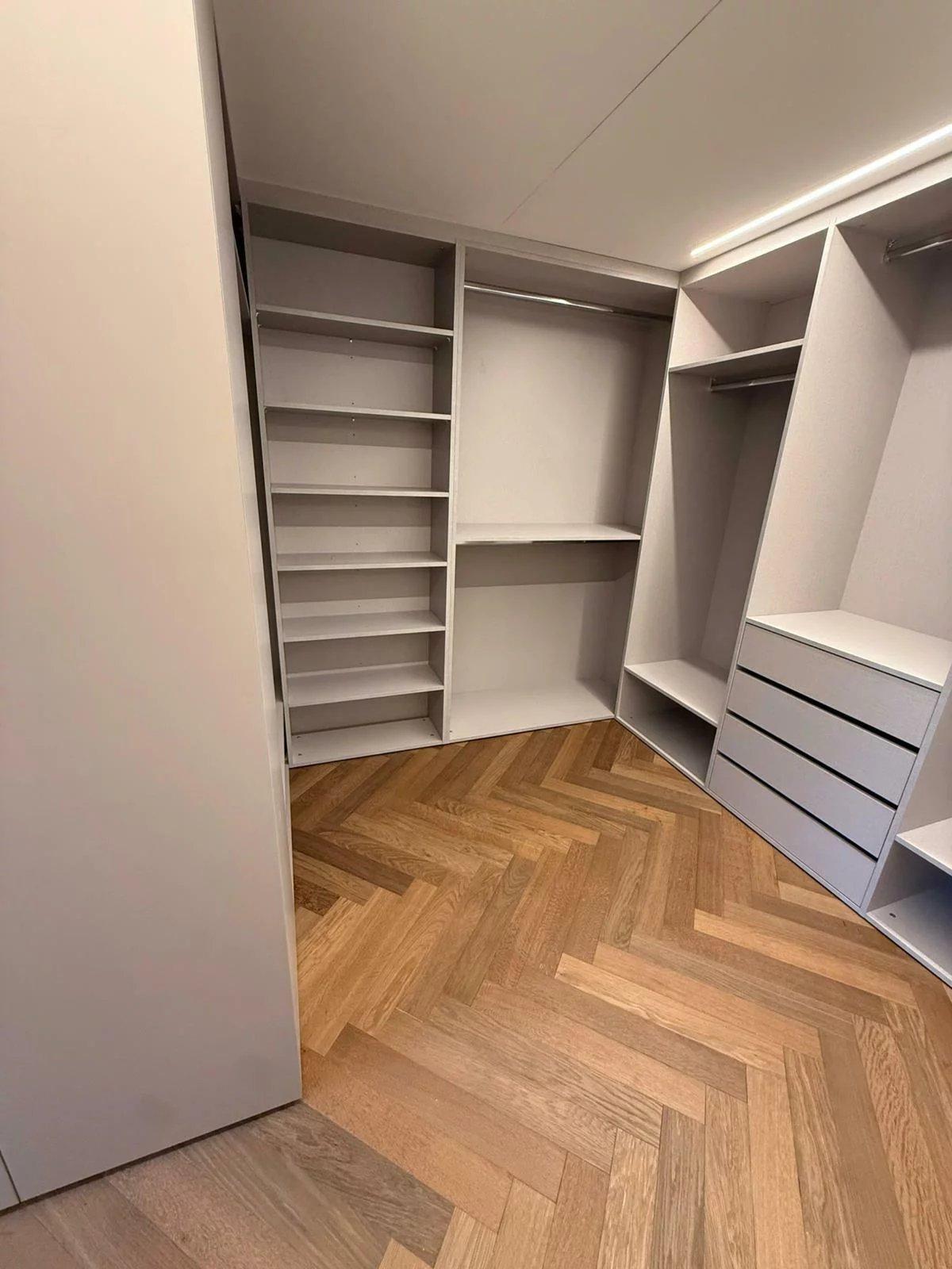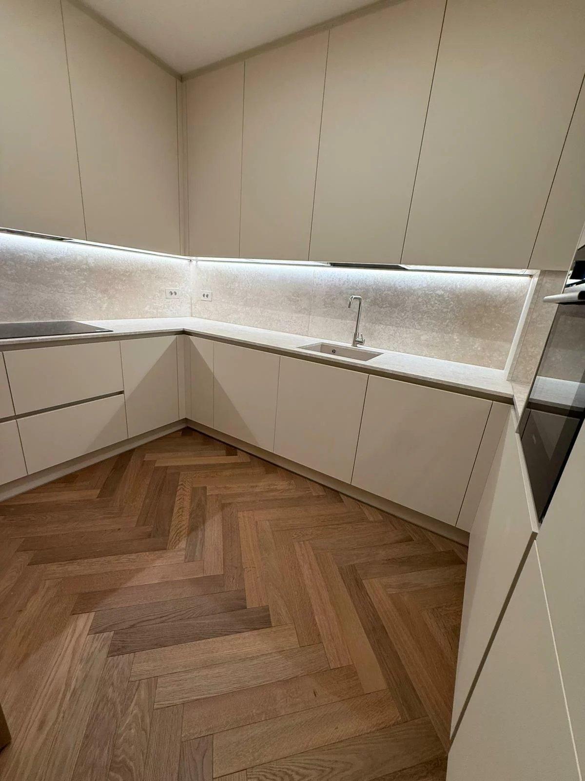 L'appartement dispose d'un espace de vie spacieux et lumineux avec une cuisine ouverte, deux chambres, deux salles de bains et un agréable balcon.