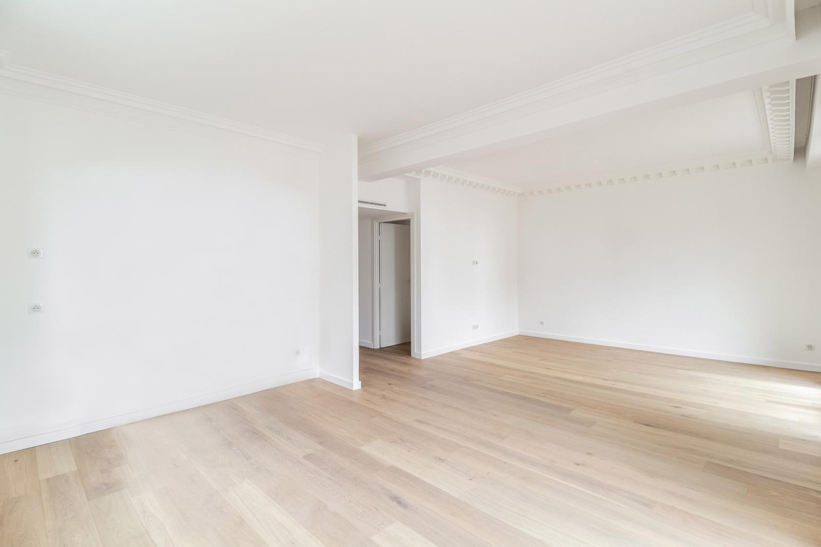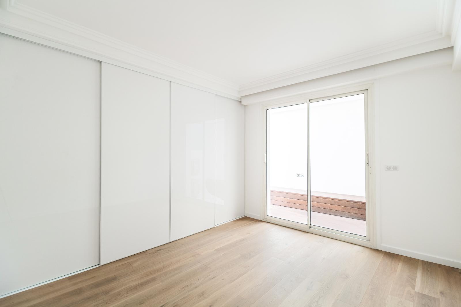 Ce 4 pièces entièrement rénové est composé de 3 chambres avec salle de bains attenantes, un double séjour avec cuisine équipée donnant sur un balcon. Une grande terrasse à l'arrière peut être aménagée comme jardin d'hiver. Ce grand appartement familial propose de belles hauteurs sous plafond et une vue partielle sur le Rocher et la mer. 3 caves complètent ce bien.