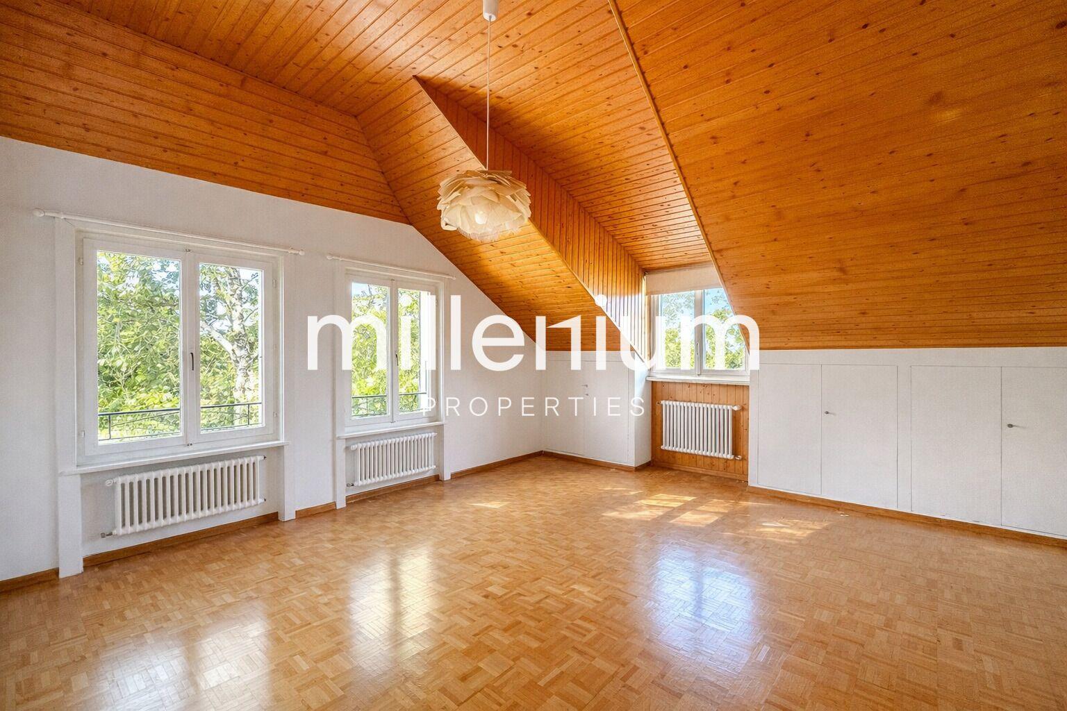 Grande villa champêtre de 205 m2, située dans un quartier calme à Choulex, avec vue imprenable sur le jardin de 2000 m2 entièrement clôturé.