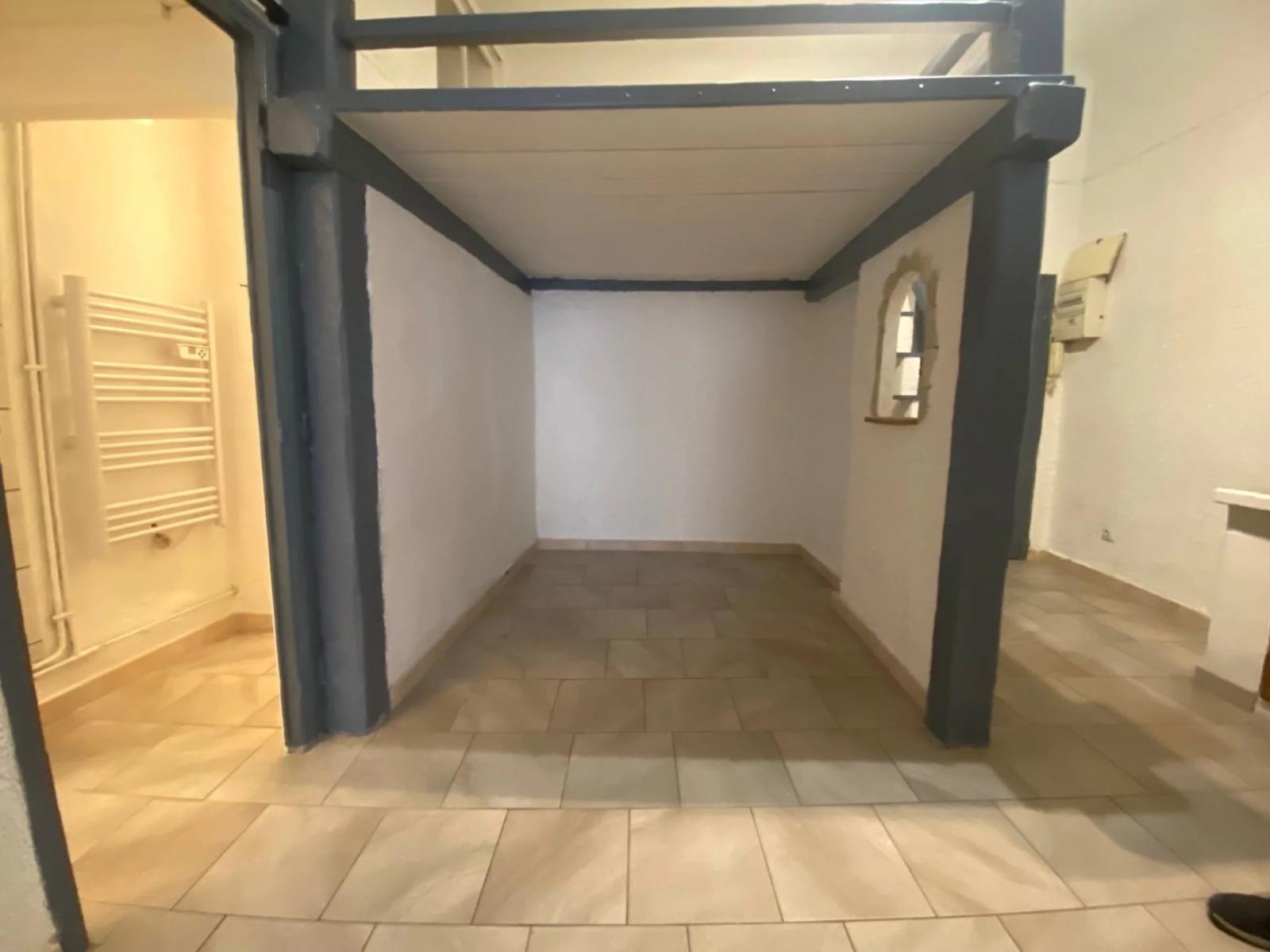 Draguignan centre ville proche des écoles agréable T2 de 38.34 m2 en rez-de-chaussée d'un petit immeuble comprenant une entrée avec coin nuit plus espace lit supplémentaire en mezzanine, une cuisine séparée, un séjour/salon, une salle d'eau avec douche et WC;