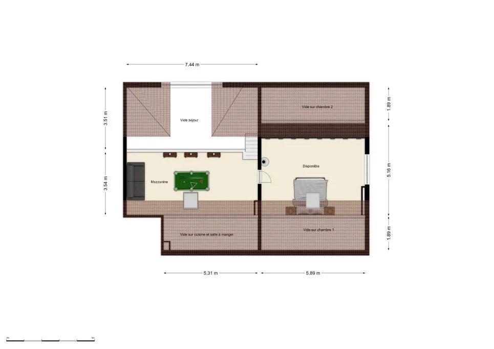 La vaste pièce de vie, baignée de lumière grâce à sa double hauteur sous plafond, s’ouvre sur une grande terrasse orientée plein sud. Une cuisine ouverte, entièrement équipée, prolonge harmonieusement cet espace convivial et donne accès à la mezzanine.