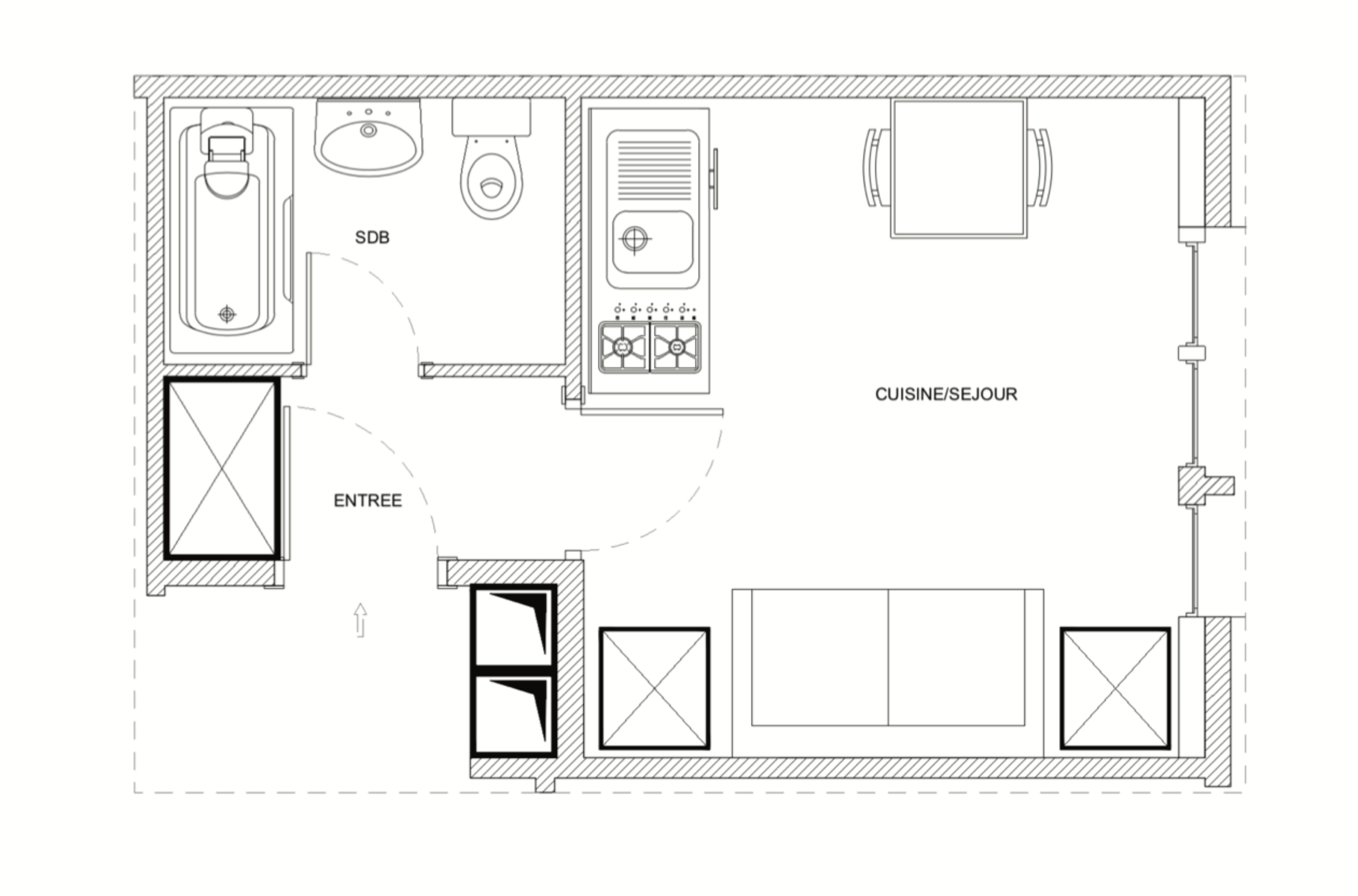 Le studio, au 5ème étage et d’environ 25 mètres carrés, se compose comme suit :