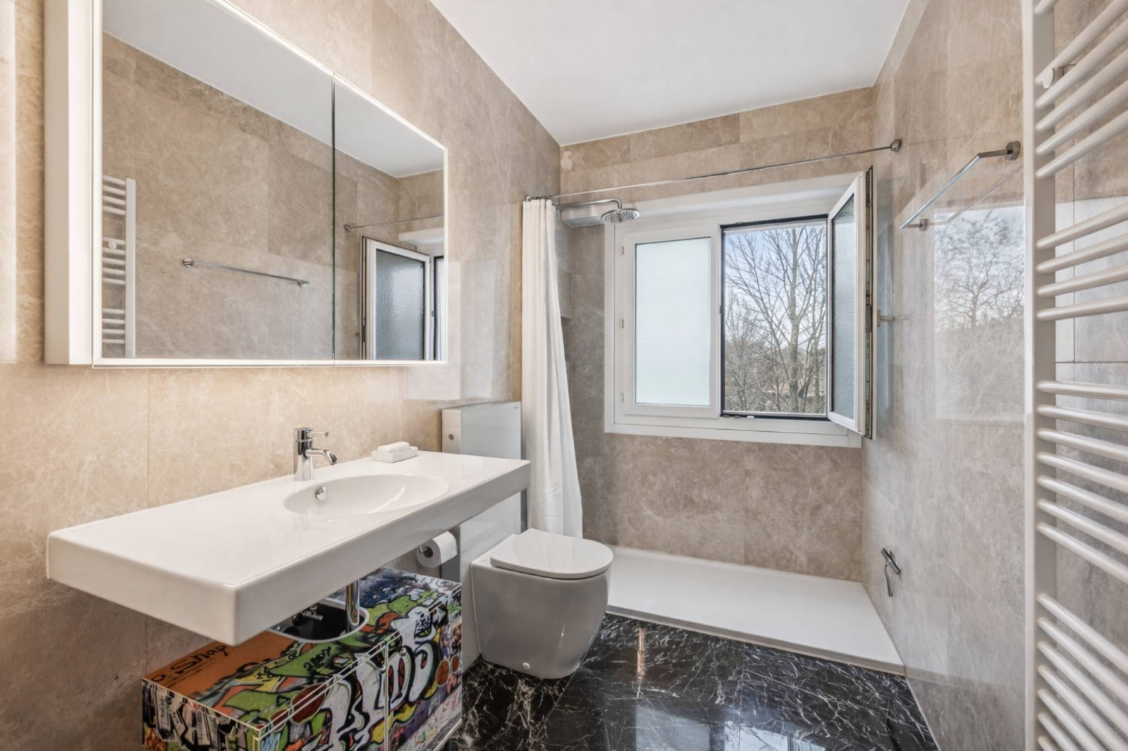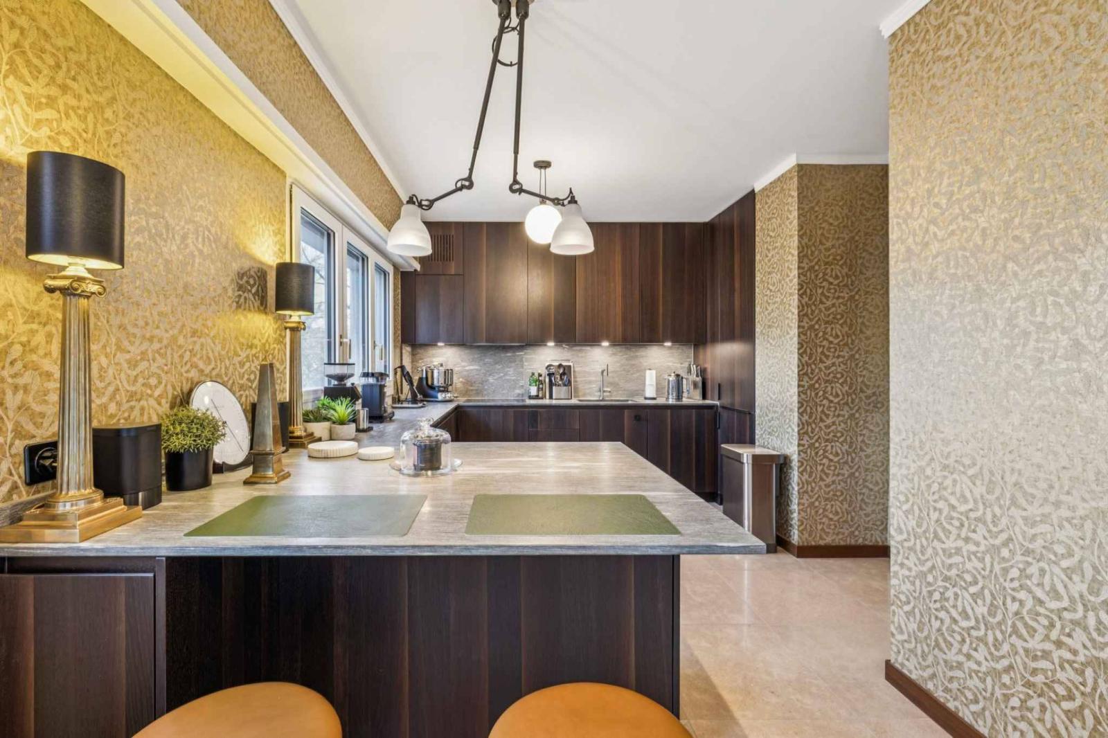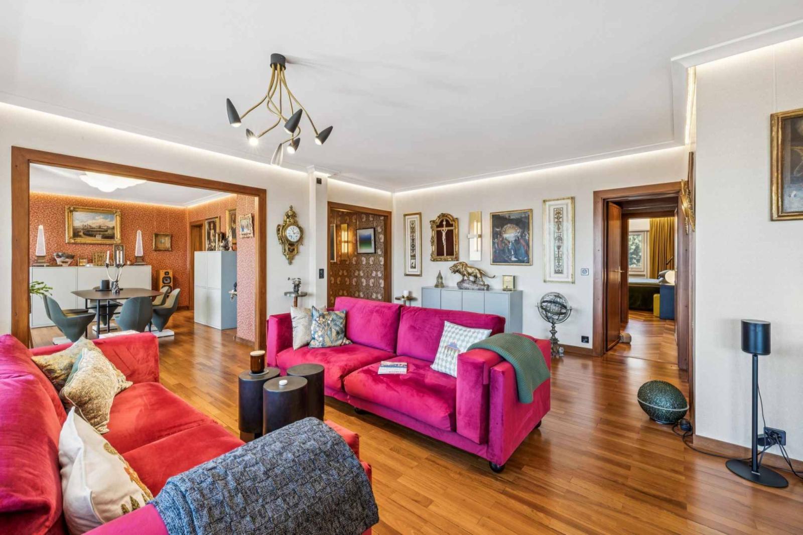Entièrement rénové, l’appartement séduit par la qualité de ses matériaux et l’harmonie de ses volumes. La lumière traverse les espaces de réception et se prolonge naturellement vers le balcon, véritable ouverture sur la verdure. La cuisine indépendante, accessible également par une entrée de service, allie esthétisme et fonctionnalité. Les finitions ont été choisies avec soin : parquet chaleureux, stores et éclairages domotisés, dans une recherche de confort discret et durable. L’ensemble dégage une élégance intemporelle, pensée pour une clientèle sensible à l’authenticité et à la qualité.