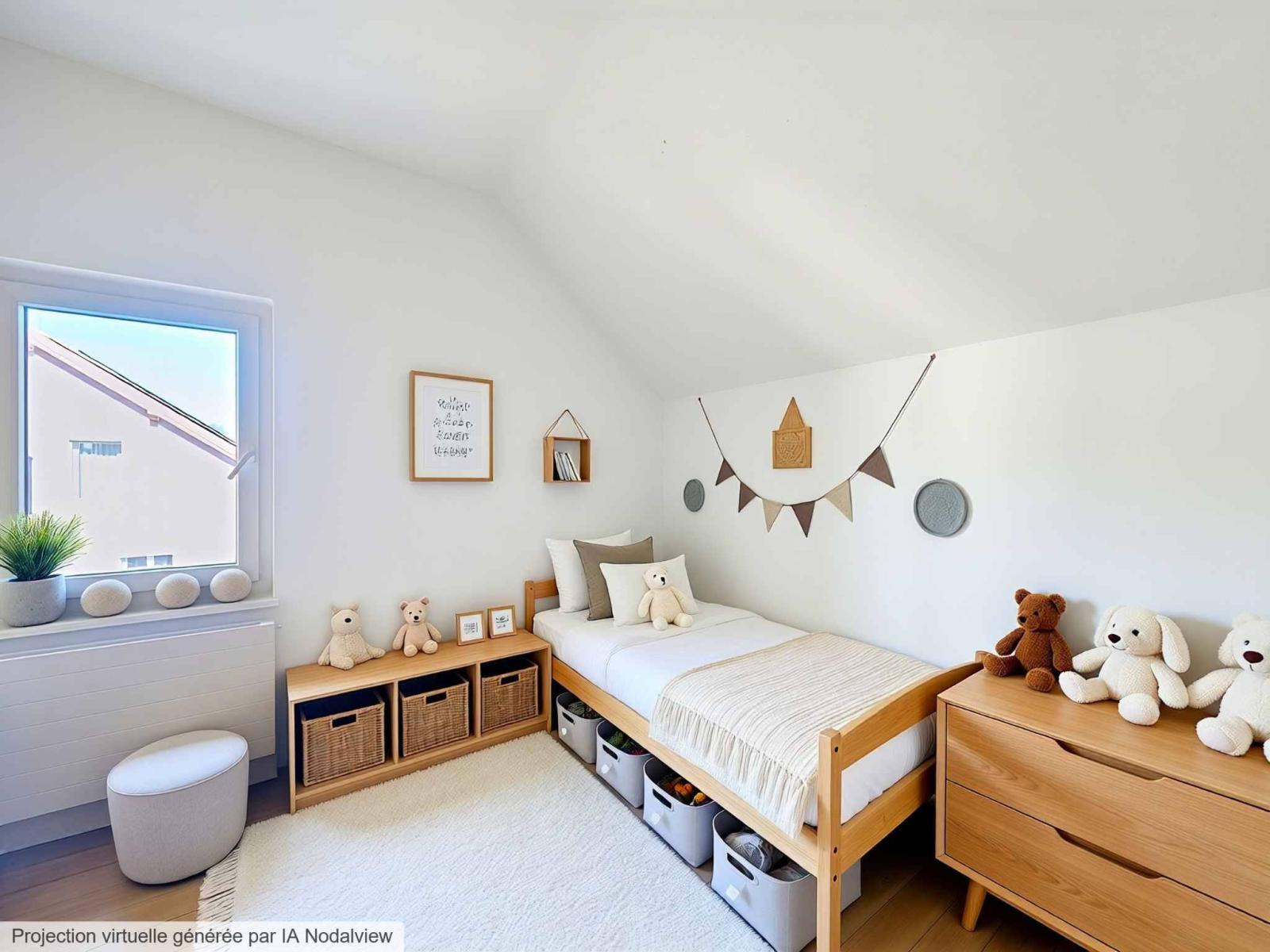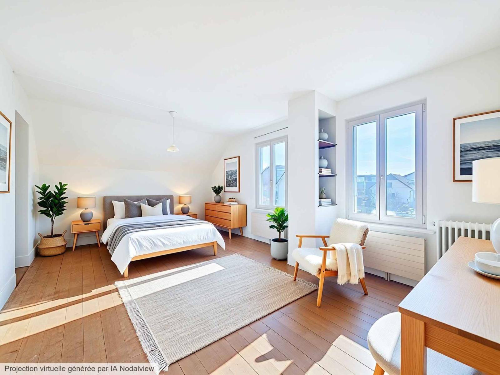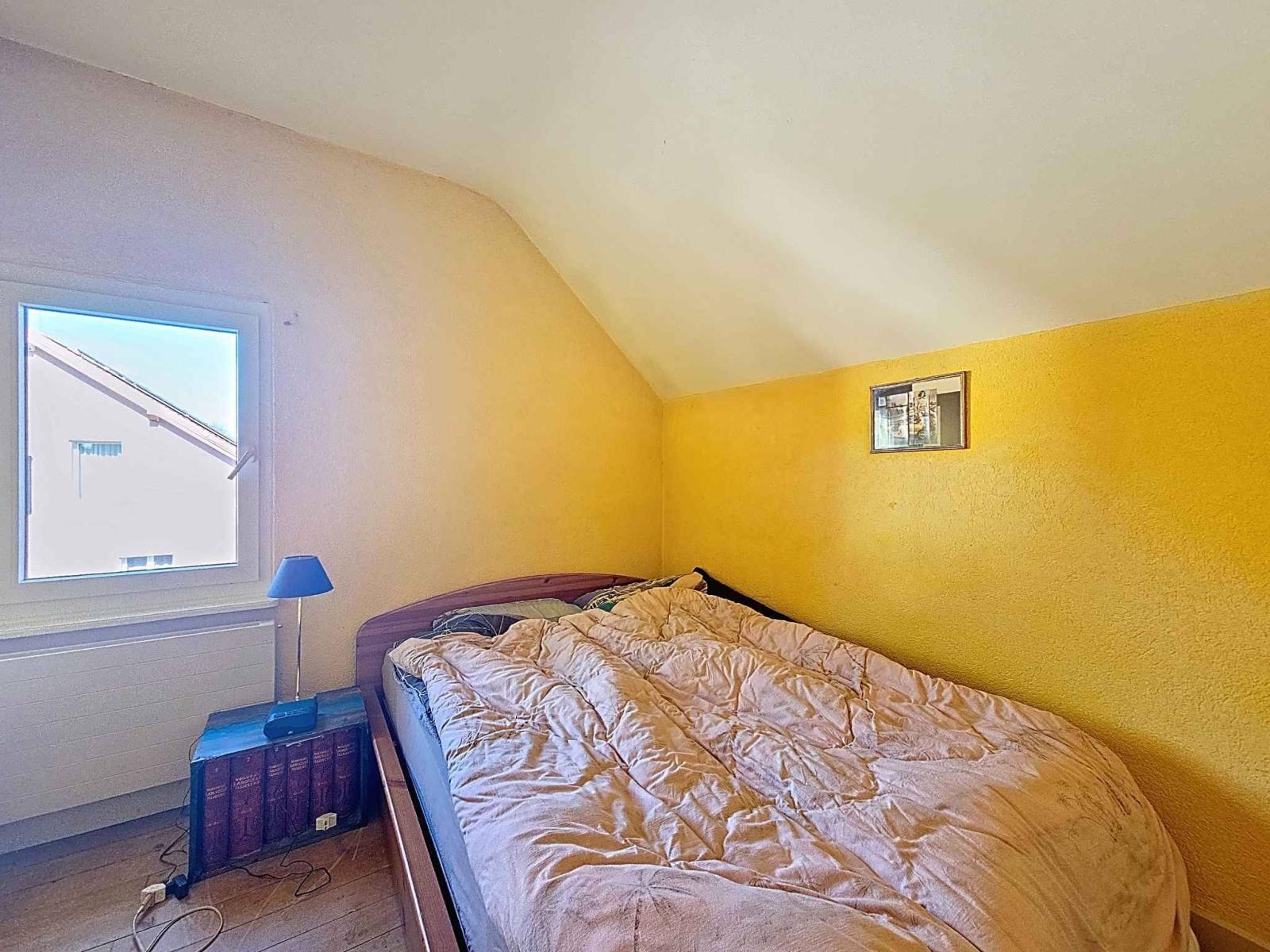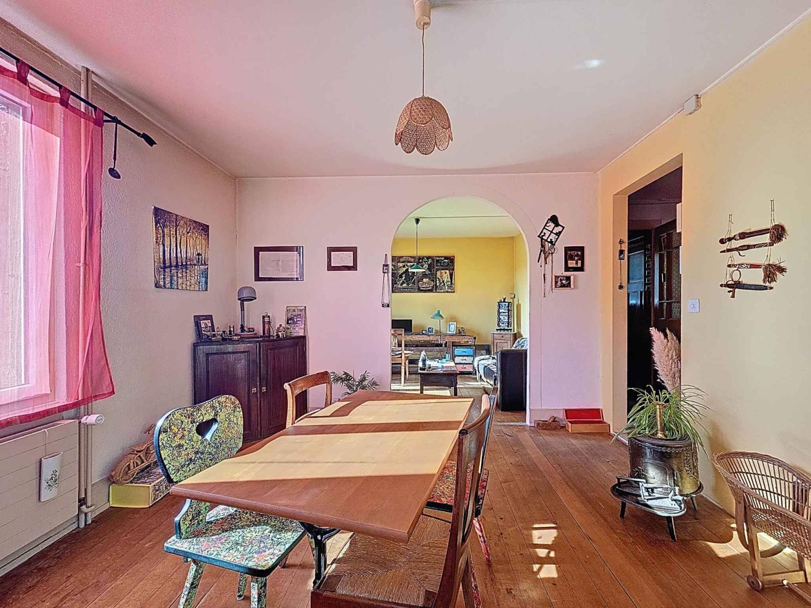 À ce jour, le rez-de-chaussée est aménagé en une vaste pièce conviviale regroupant cuisine, salle à manger et espace de vie. À l’étage, se trouvent une grande chambre, une salle de bains ainsi qu’une vaste pièce d’environ 46 m², facilement divisible en deux grandes chambres selon les besoins.