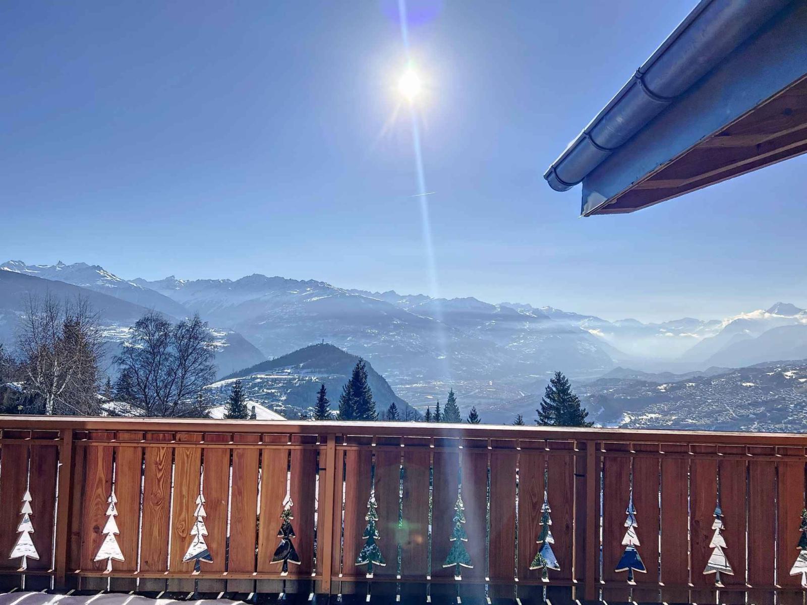 En exclusivité - Au bénéfice d'une vue panoramique sur la plaine du Rhône, les montagnes avoisinantes et le village de Lens et son Christ Roi, ce magnifique chalet se situe dans un quartier résidentiel, au calme, à moins de 5 minutes du centre de la station.