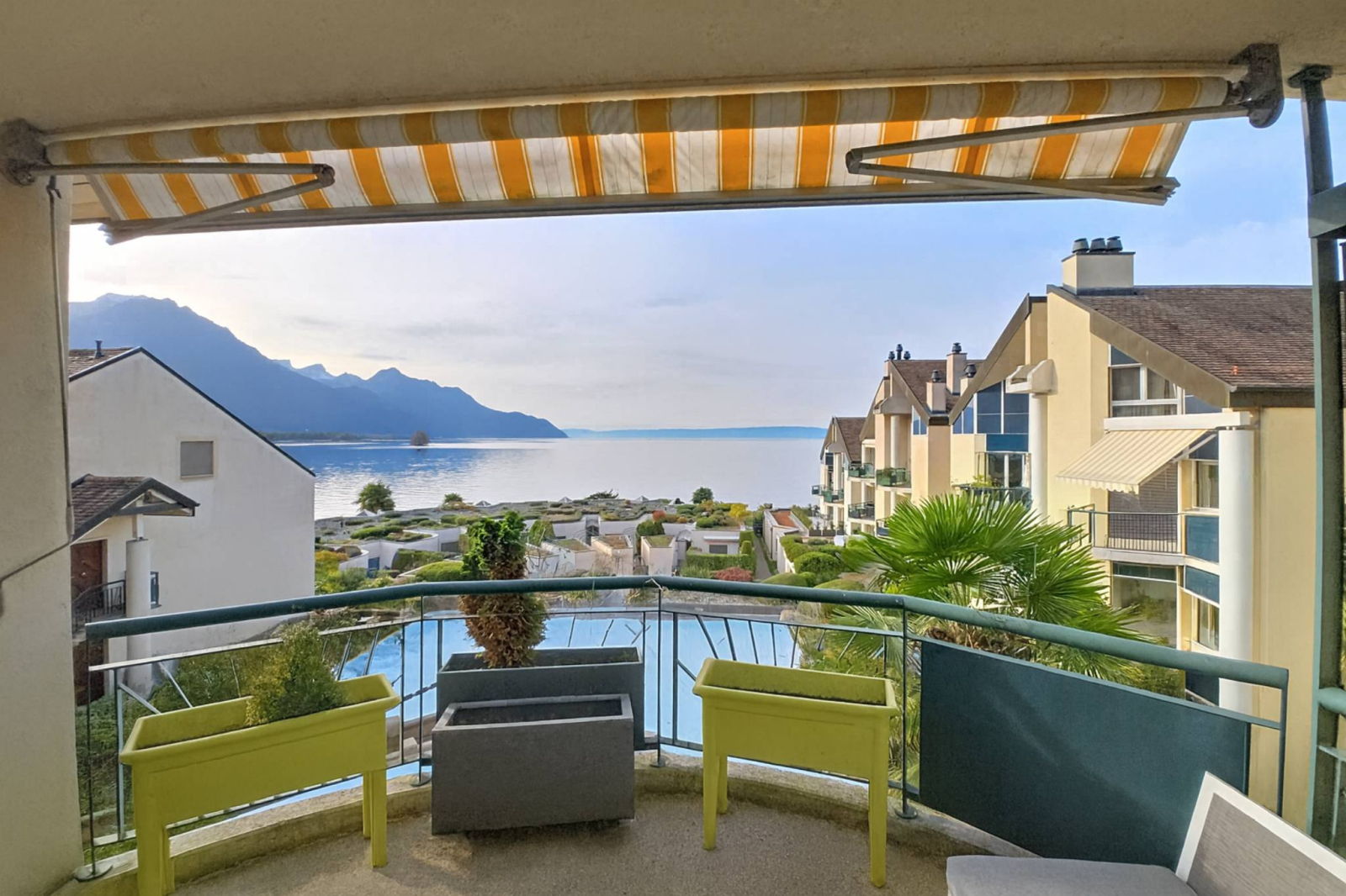 Il bénéficie d’un emplacement privilégié, à proximité immédiate de toutes les commodités, et jouit d’une vue imprenable sur le lac Léman et les montagnes.