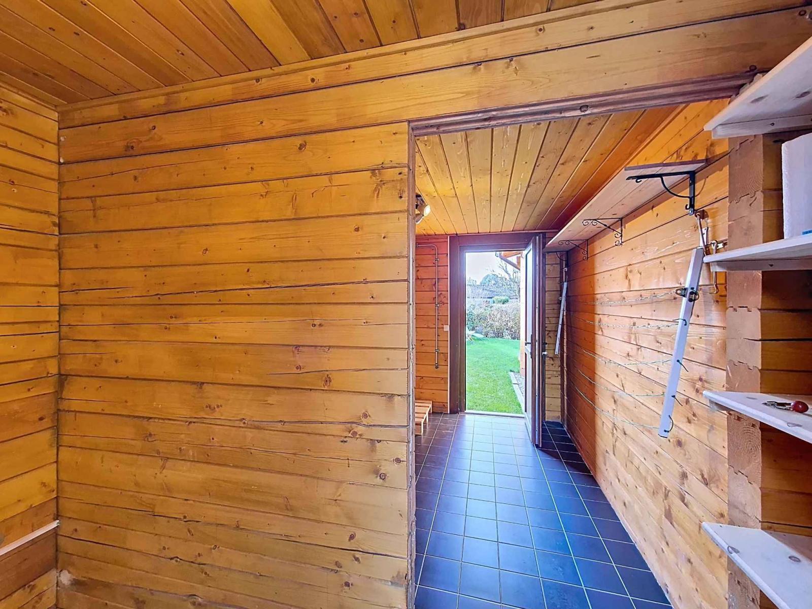 Le jardin arboré offre un cadre extérieur agréable, intimiste et propice à la détente, et bénéficie en outre d’un cabanon, idéal pour le rangement du matériel ou l’aménagement d’un espace supplémentaire.