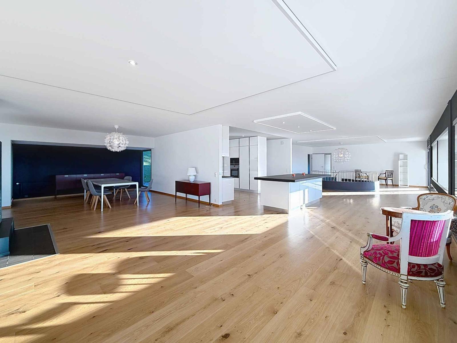Le 2ème étage, pensé comme un loft, est sans nul doute l'attrait principal de cette propriété. Un magnifique plafond cathédrale et une mezzanine surplombent une grande pièce de vie. Du salon chaleureux avec sa cheminée fonctionnelle à la cuisine équipée ouverte sur la lumineuse salle à manger, le charme de la pièce est indéniable.