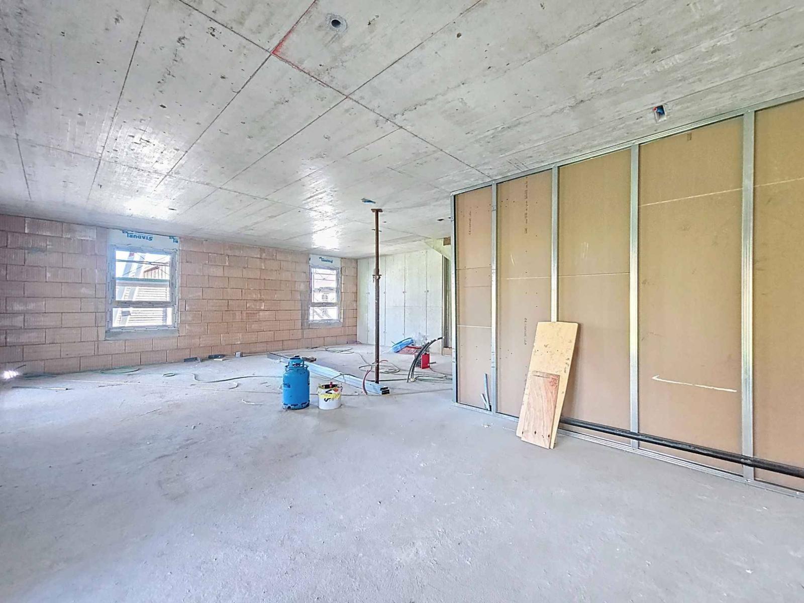 Au premier étage, un salon confortable offre un espace supplémentaire, parfait comme coin détente ou salle TV. Un bureau — pouvant également servir de chambre d’amis — ainsi qu’une salle de douche complètent ce niveau.