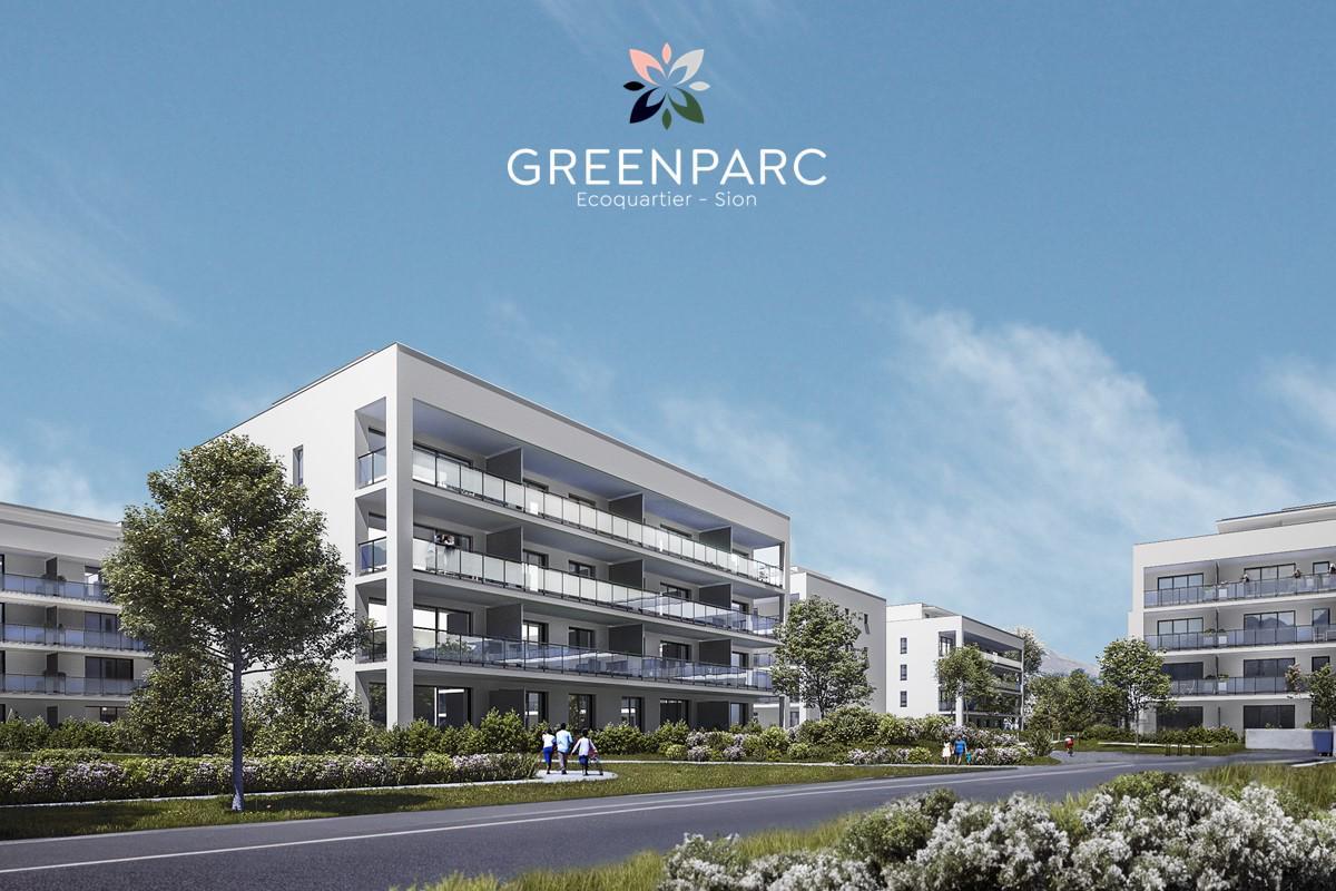 L’écoquartier « Greenparc » se situe dans le quartier de Champsec à Sion, à proximité de toutes les commodités et des transports publics.