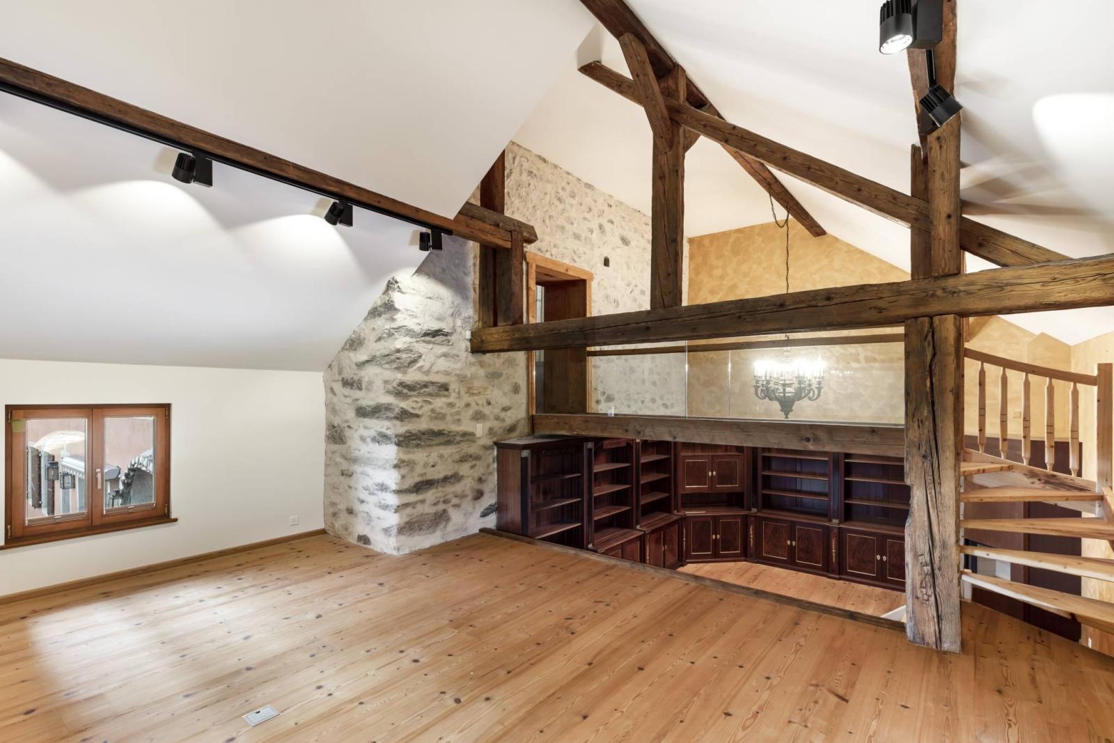 Ces combles pourraient permettre la création de surfaces supplémentaires, telles qu’un espace indépendant, un étage privé d’exception ou encore, sous réserve des autorisations usuelles, l’aménagement de deux à trois appartements distincts, ouvrant la voie à un investissement immobilier particulièrement intéressant.