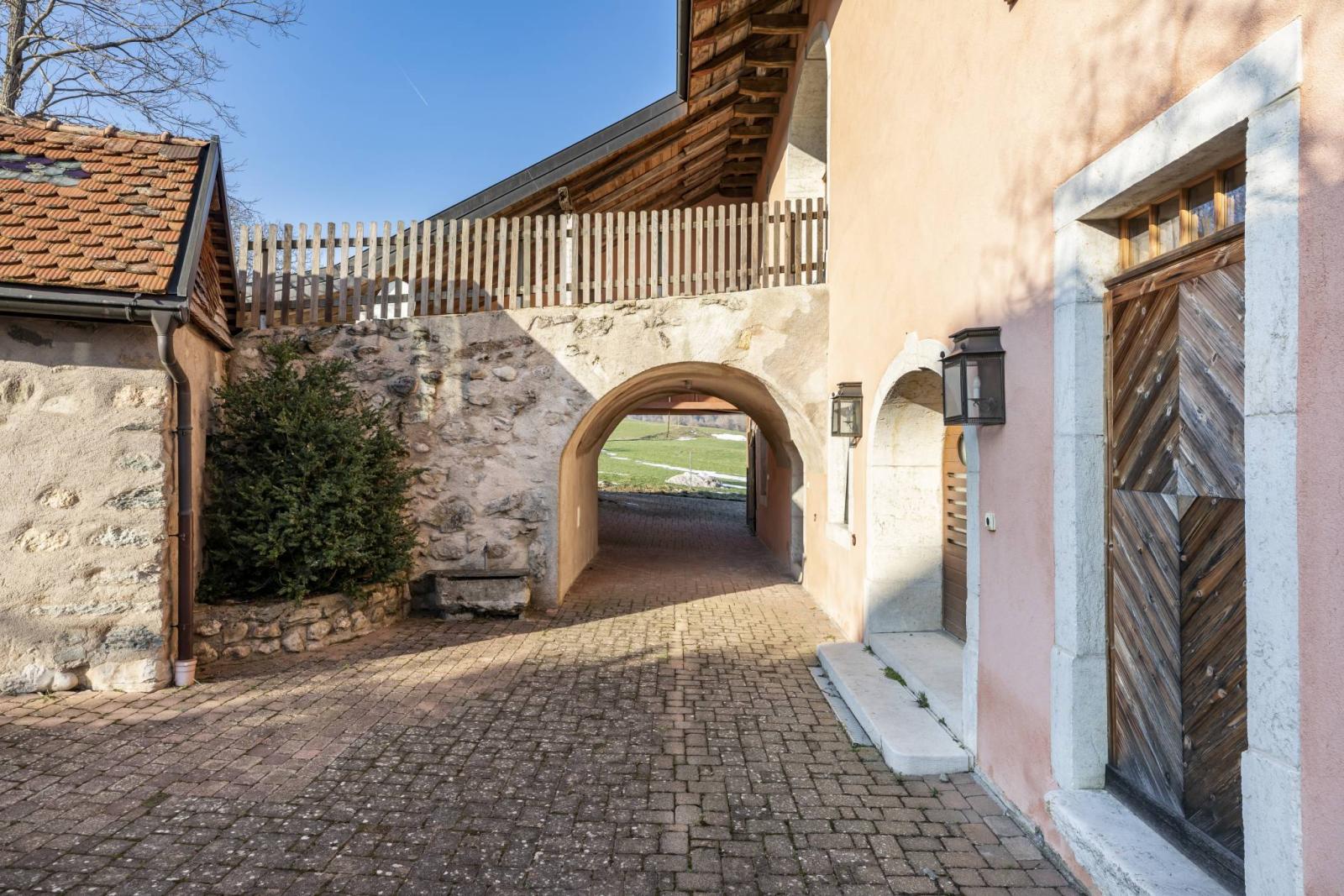Niché au cœur d'un village bucolique au pied du Jura, dans le district de Morges (environ 23 minutes en voiture de Morges), c'est un patrimoine de 1829 rénové qui profite d'une situation à tendance dominante qui permet une jolie vue dégagée sur la campagne morgienne, les Alpes et une échappée sur le lac depuis les étages.
