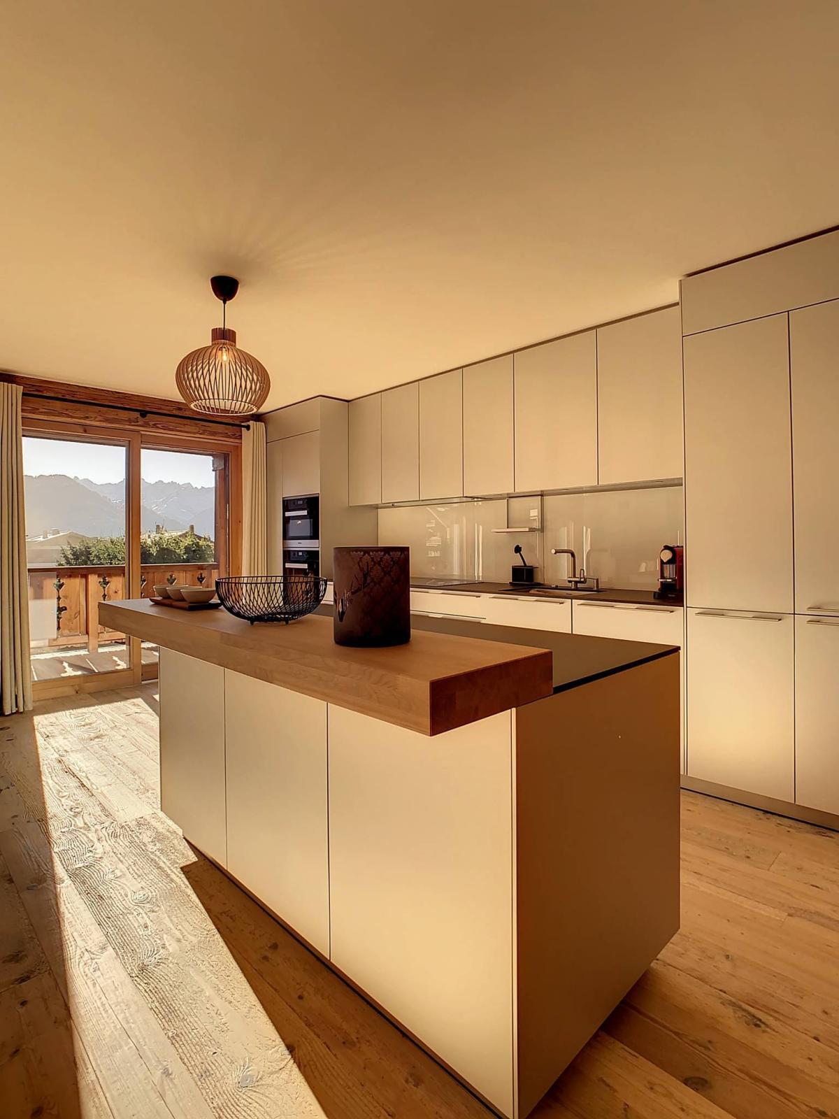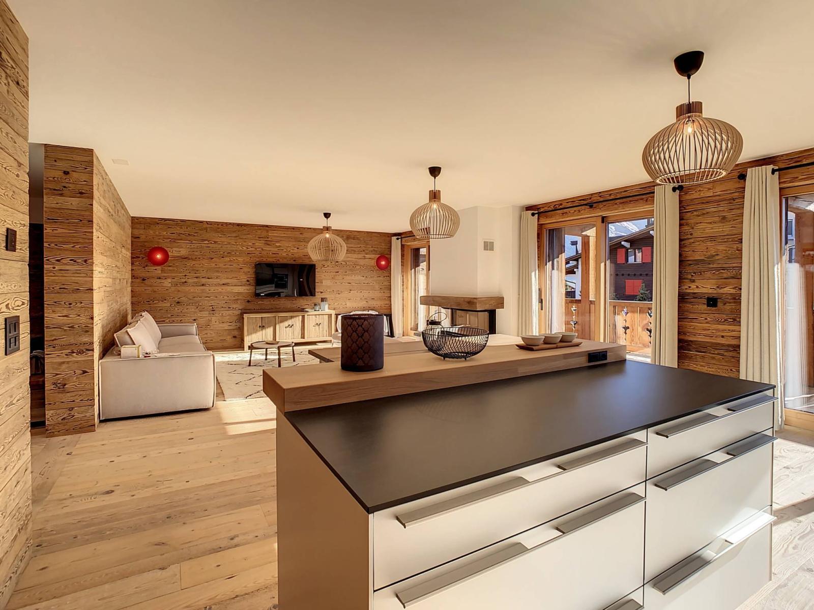 Situé au cœur de Verbier, cet appartement de 187 m² allie harmonieusement le charme du bois ancien et l’élégance contemporaine. Il comprend trois chambres en suite, un vaste séjour lumineux, une cuisine ouverte et une salle à manger conviviale. Orienté plein sud, il bénéficie de grandes baies vitrées offrant une vue panoramique imprenable sur les montagnes.