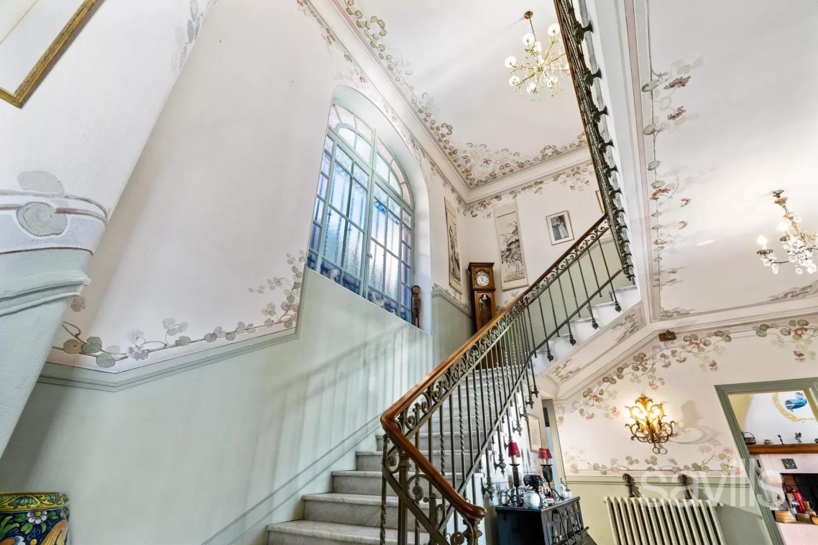 Dès l’entrée, un hall grandiose orné de détails d’époque accueille les visiteurs, s’ouvrant sur un vaste séjour/salle à manger baigné de lumière naturelle, où de grandes baies vitrées capturent la beauté du littoral. Attenant, un bureau-bibliothèque raffiné, paré de boiseries nobles, invite à la quiétude et à la contemplation. Un escalier monumental, véritable œuvre d’art, mène au premier étage, où trois chambres spacieuses s’ouvrent chacune sur un balcon privatif offrant des vues marines spectaculaires. Ces espaces sont complétés par un dressing élégant et deux salles de bains modernes, où le confort contemporain s’harmonise avec des plafonds ornés de fresques artisanales, témoins d’un savoir-faire d’exception.