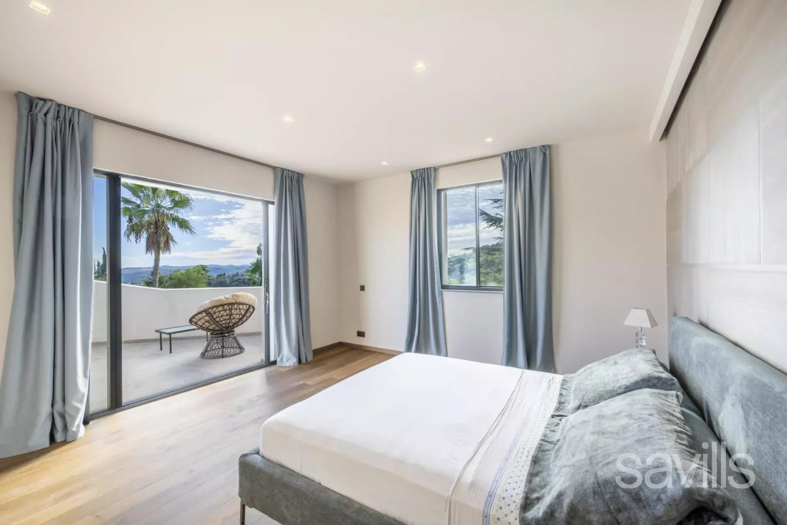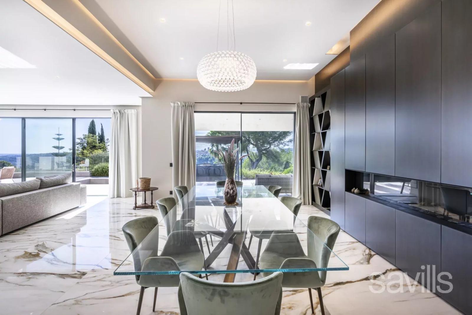 Nichée sur les hauteurs paisibles de Saint-Paul de Vence, cette villa de 830 m² offre une élégance moderne avec vue imprenable sur le village médiéval.