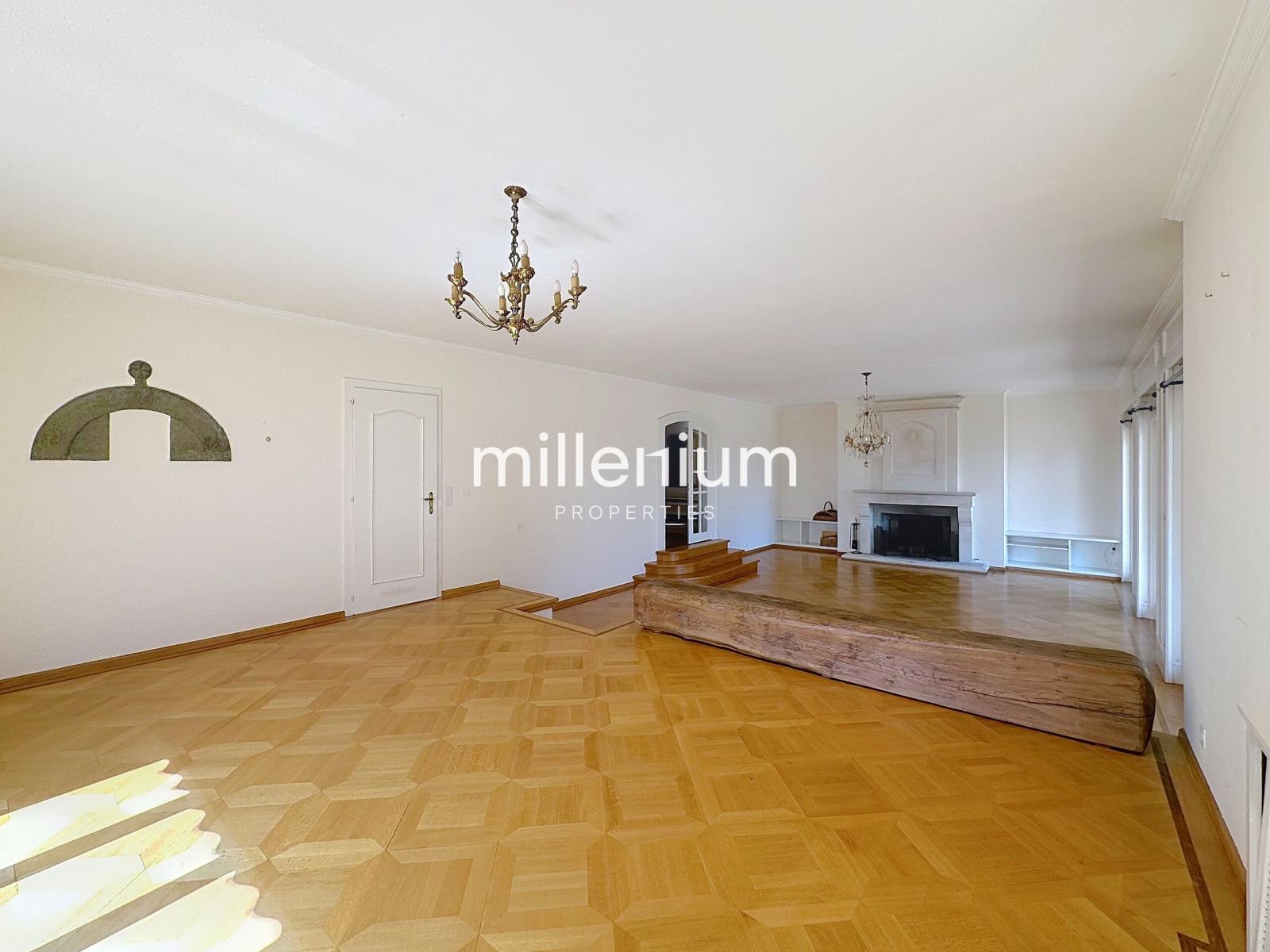 The property develops a living area of around 350 m² and benefits from well-appointed features, including solid wood parquet flooring, a fully equipped contemporary kitchen as well as an alarm system.
