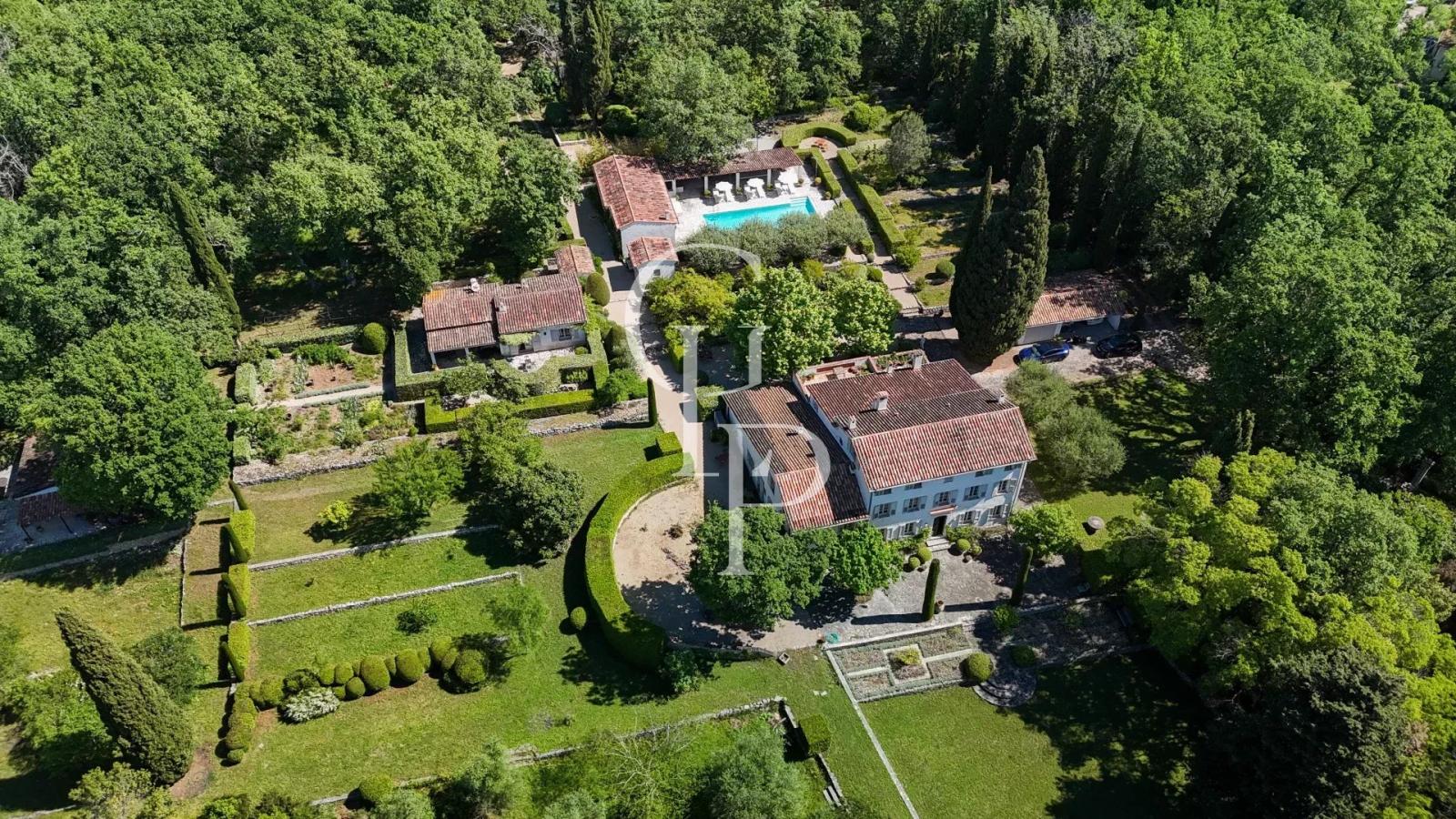 Enfin, la propriété dispose de nombreux bâtiments annexes pour le stockage, la buanderie, un garage en bois, un abri pour les outils et un système de filtration centralisé pour l’arrosage du jardin. Les installations techniques, telles que le chauffage au sol dans certaines pièces, la climatisation réversible et les systèmes électriques et de plomberie, ont été récemment rénovées et sont de très haute qualité.