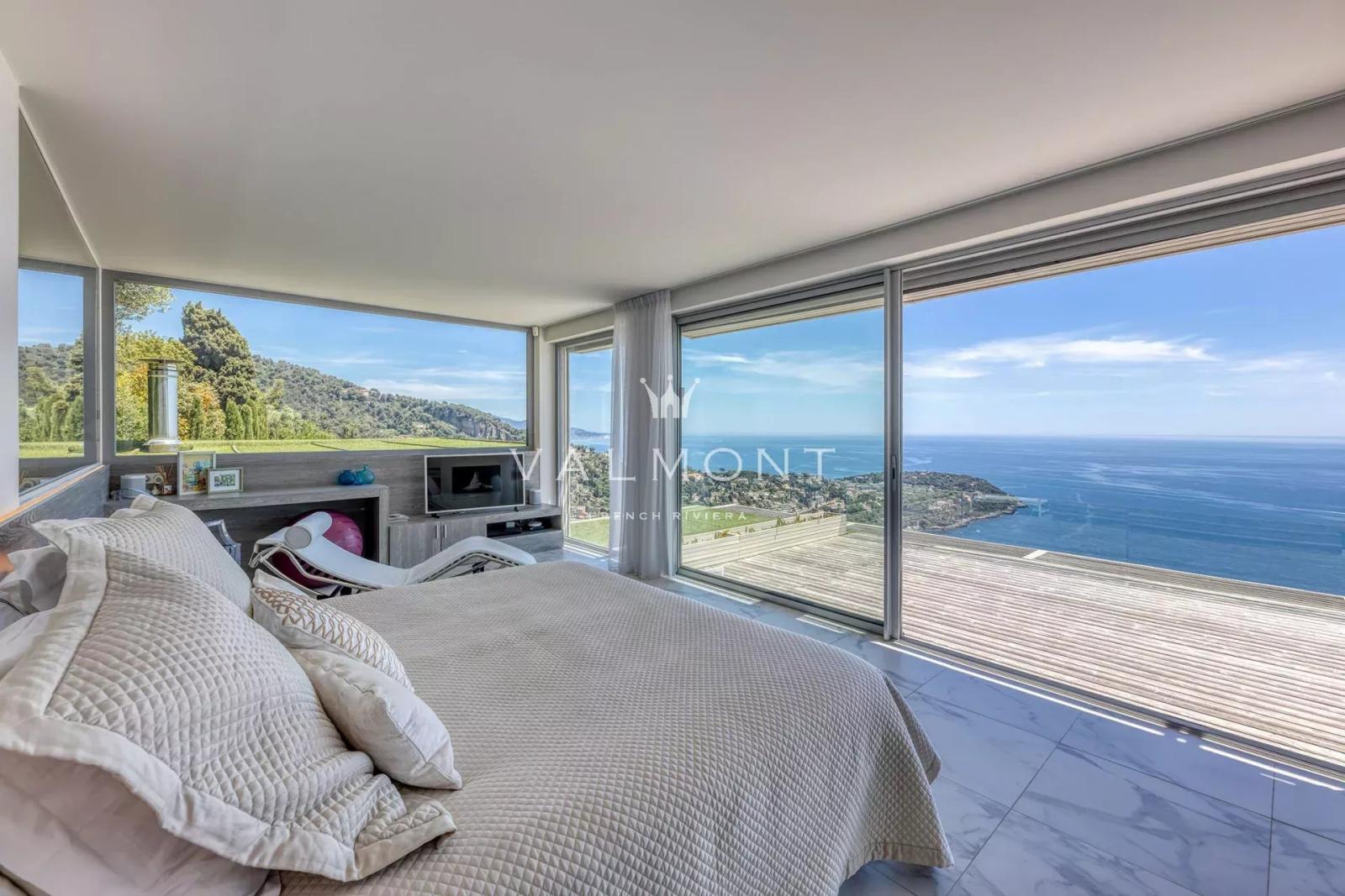 Véritable chef-d'œuvre d'élégance et de design, la villa se compose d’une résidence principale ainsi que d’une suite d’invités indépendante. Le niveau supérieur est entièrement dédié à la luxueuse suite parentale, dont les fenêtres du sol au plafond dévoilent une vue panoramique spectaculaire sur la mer. Les chambres d'amis, parfaitement aménagées, bénéficient toutes d’une vue mer et d’un accès à des salles de bains au design soigné, inspirées de l’univers du spa.