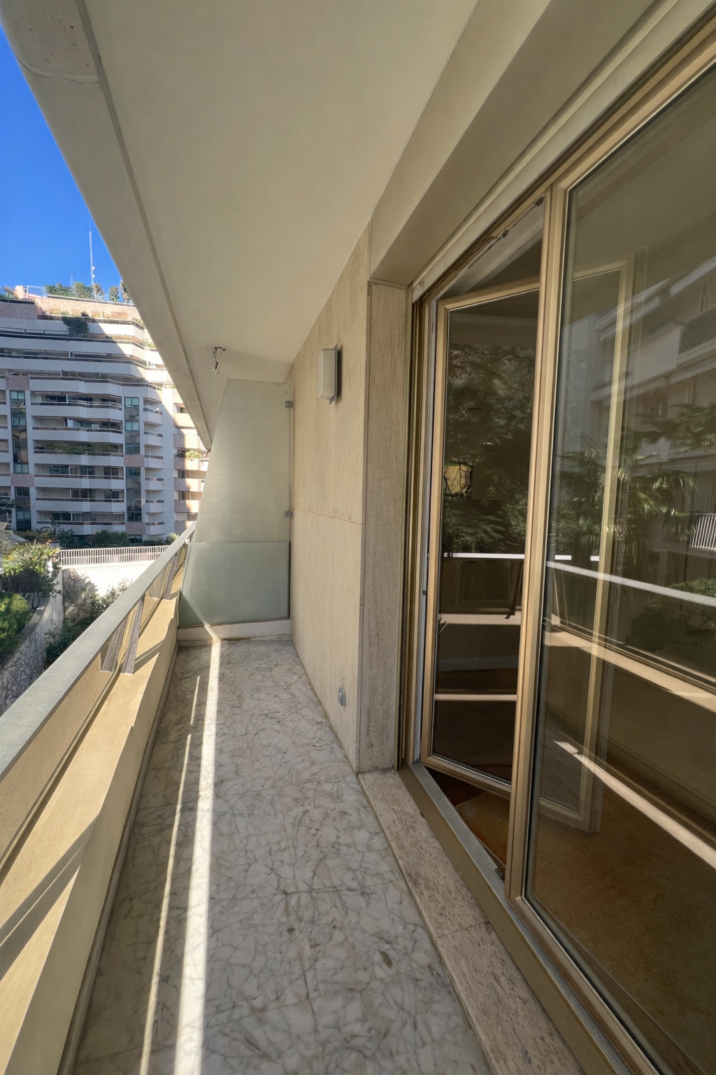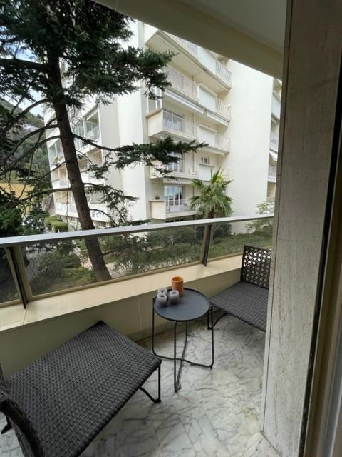 Dans un immeuble avec concierge, le “Bel Horizon”, situé dans le quartier du Jardin Exotique,ce beau studio est rénové et équipé de la climatisation. Il dispose de :