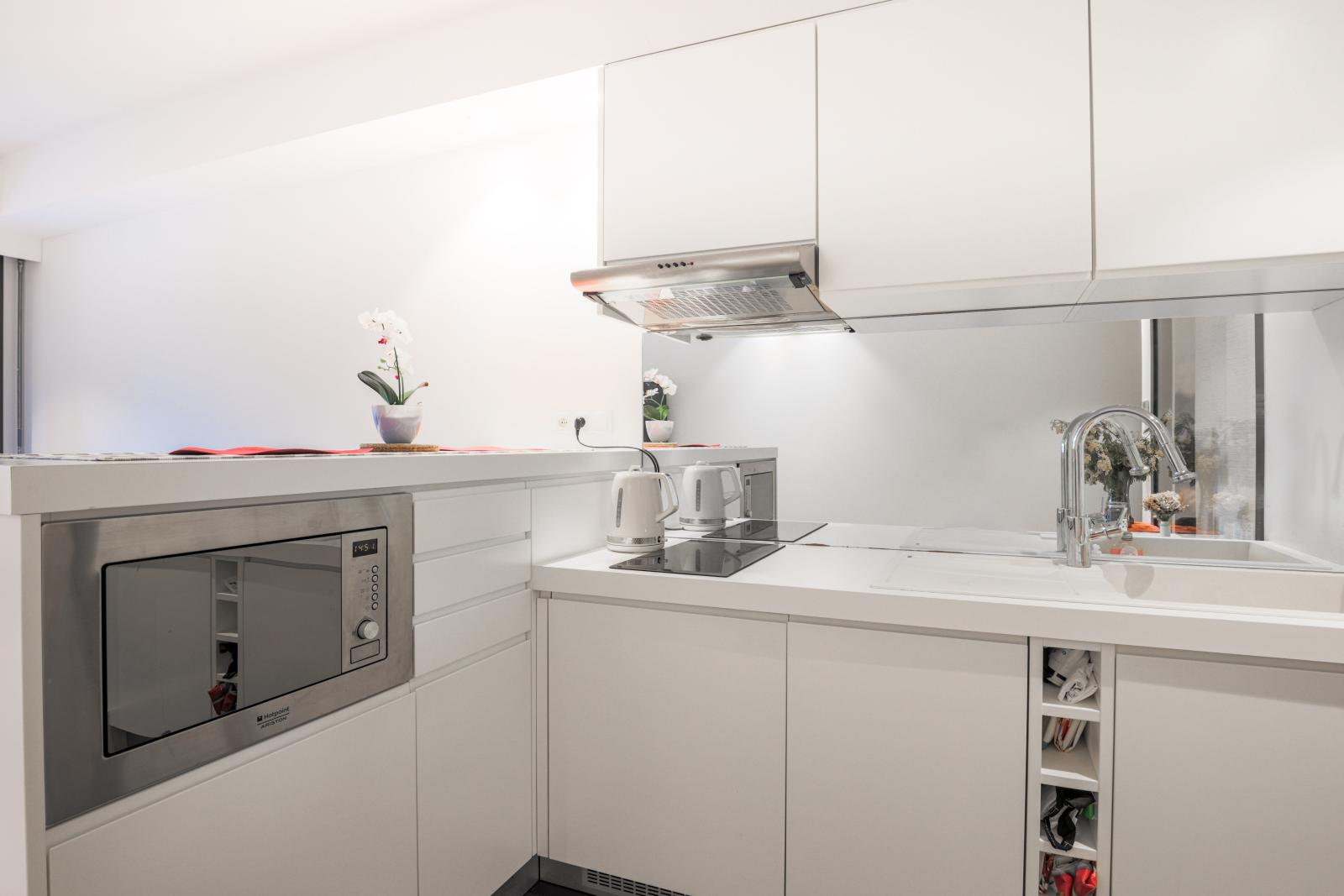 Ce bien d'exception se compose d'un séjour lumineux ouvert sur la terrasse, d'une cuisine équipée avec des finitions de luxe, et d'une spacieuse chambre avec dressing sur mesure. La rénovation complète a été réalisée avec une attention particulière, créant un espace de vie moderne et raffiné.