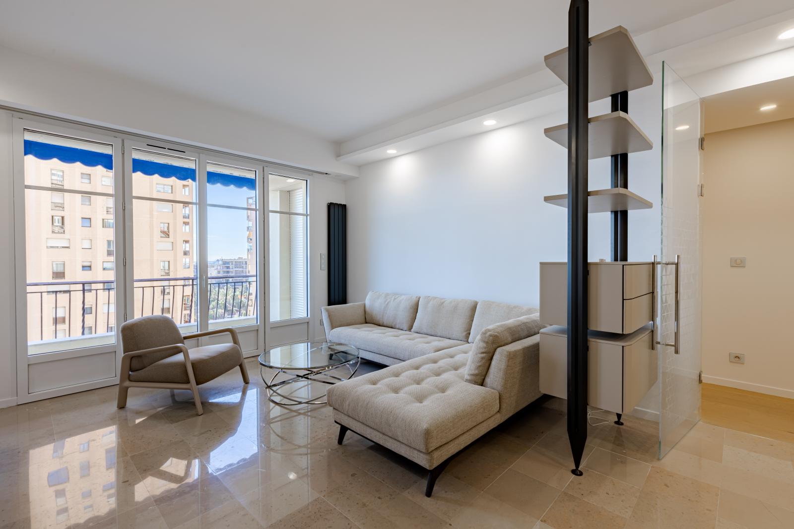 Magnifique appartement de 4 pièces entièrement rénové et meublé, offrant une vue sur la mer et une luminosité exceptionnelle.