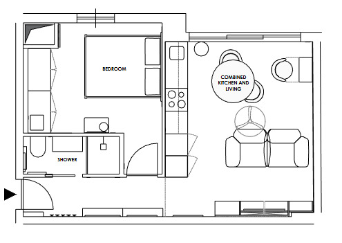 L’appartement comprend une entrée, un séjour spacieux, une cuisine entièrement équipée, une chambre confortable avec accès terrasse, des toilettes invités ainsi qu’une salle de bains.
