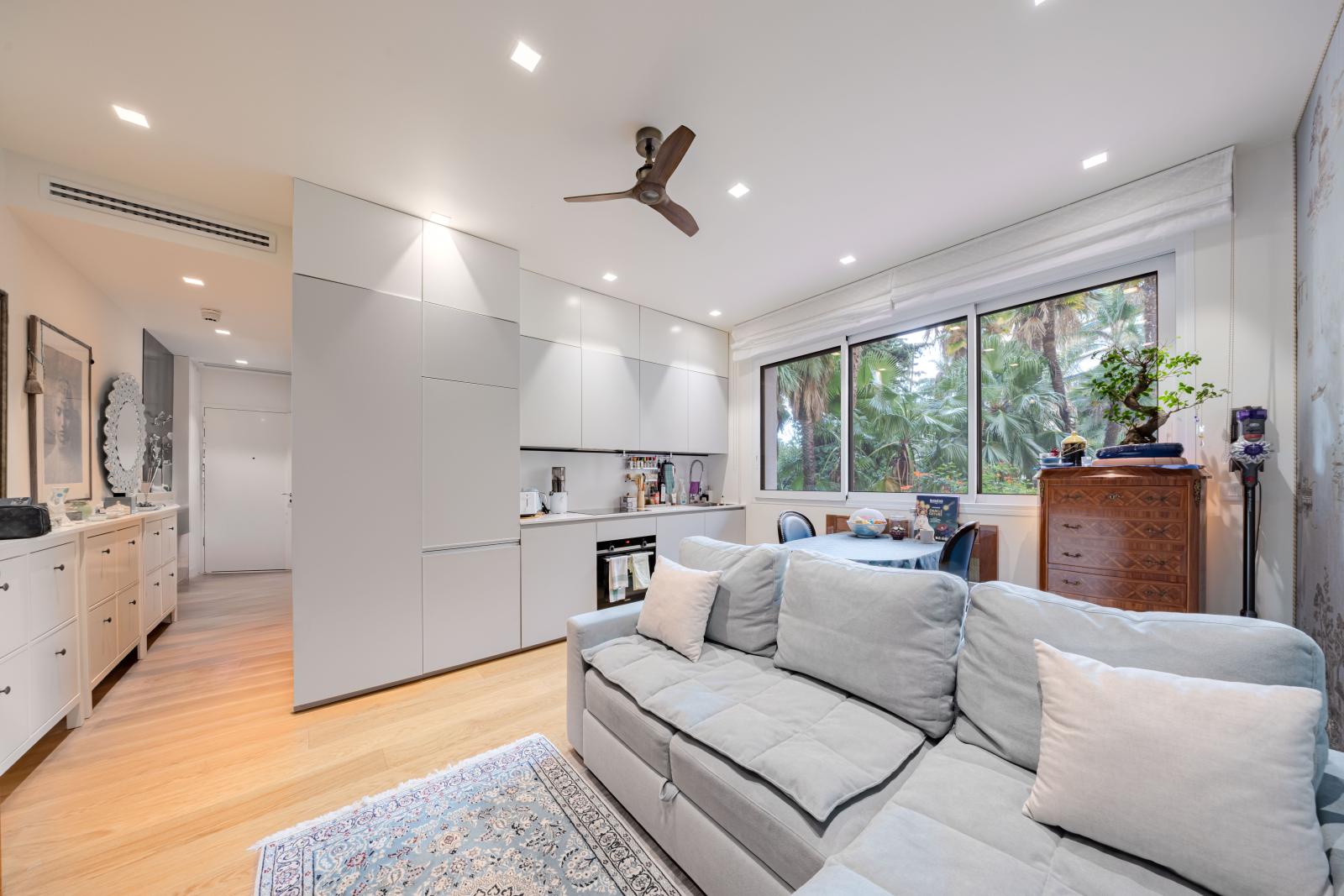 Ce bien d'exception se compose d'un séjour lumineux ouvert sur la terrasse, d'une cuisine équipée avec des finitions de luxe, et d'une spacieuse chambre avec dressing sur mesure. La rénovation complète a été réalisée avec une attention particulière, créant un espace de vie moderne et raffiné.