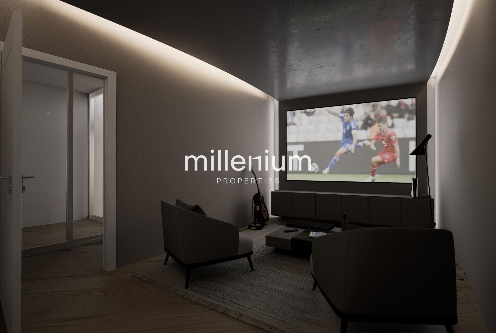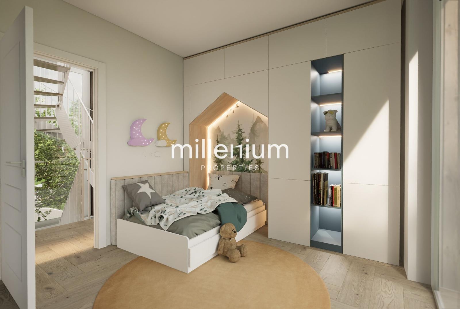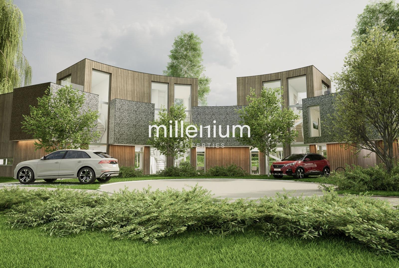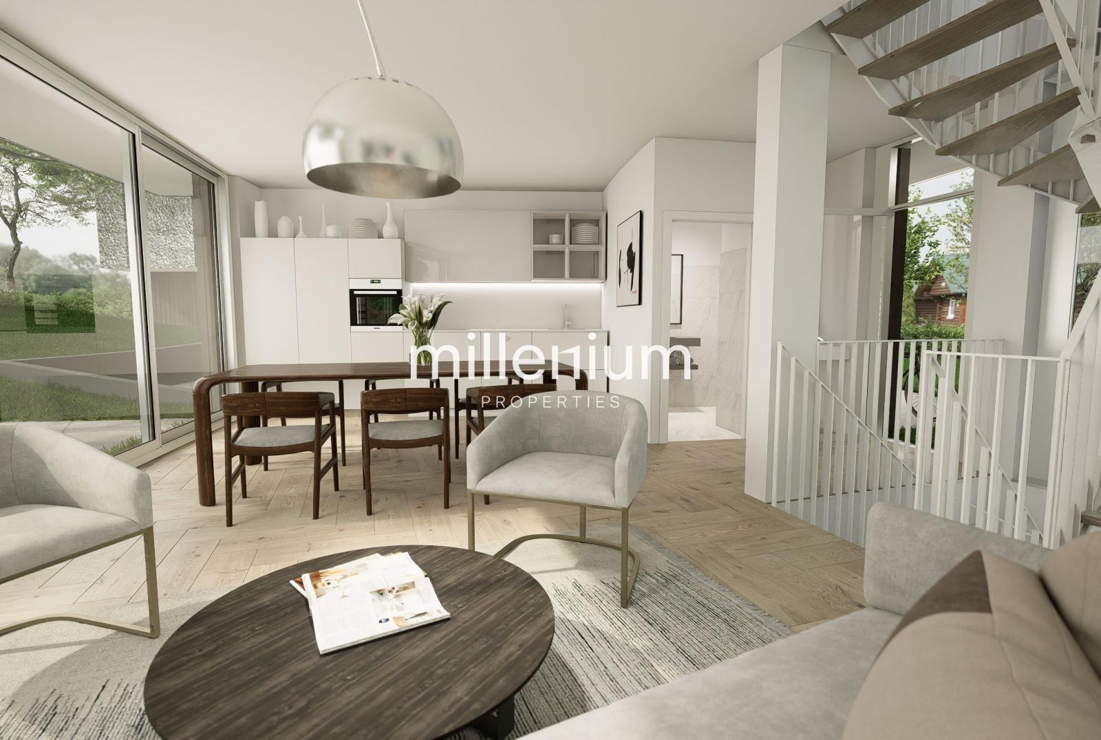 Chaque villa se déploie sur quatre niveaux. Le rez-de-jardin accueille un vaste espace de vie avec séjour et cuisine ouverte. Les chambres principales se situent au premier étage, tandis que l’attique est aménagé soit en chambre supplémentaire, soit en bureau selon la typologie de la villa. Un grand sous-sol complète l’ensemble et offre de nombreuses possibilités d’aménagement.