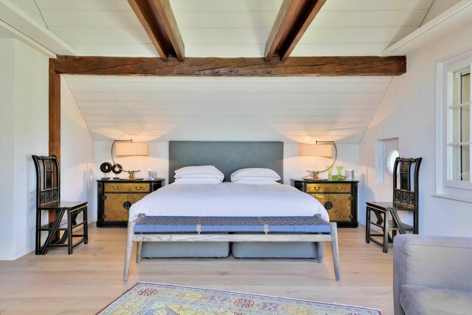 L’étage propose une mezzanine, un grand espace bureau, une chambre, une salle de douche avec WC ainsi qu’un espace annexe avec local technique.