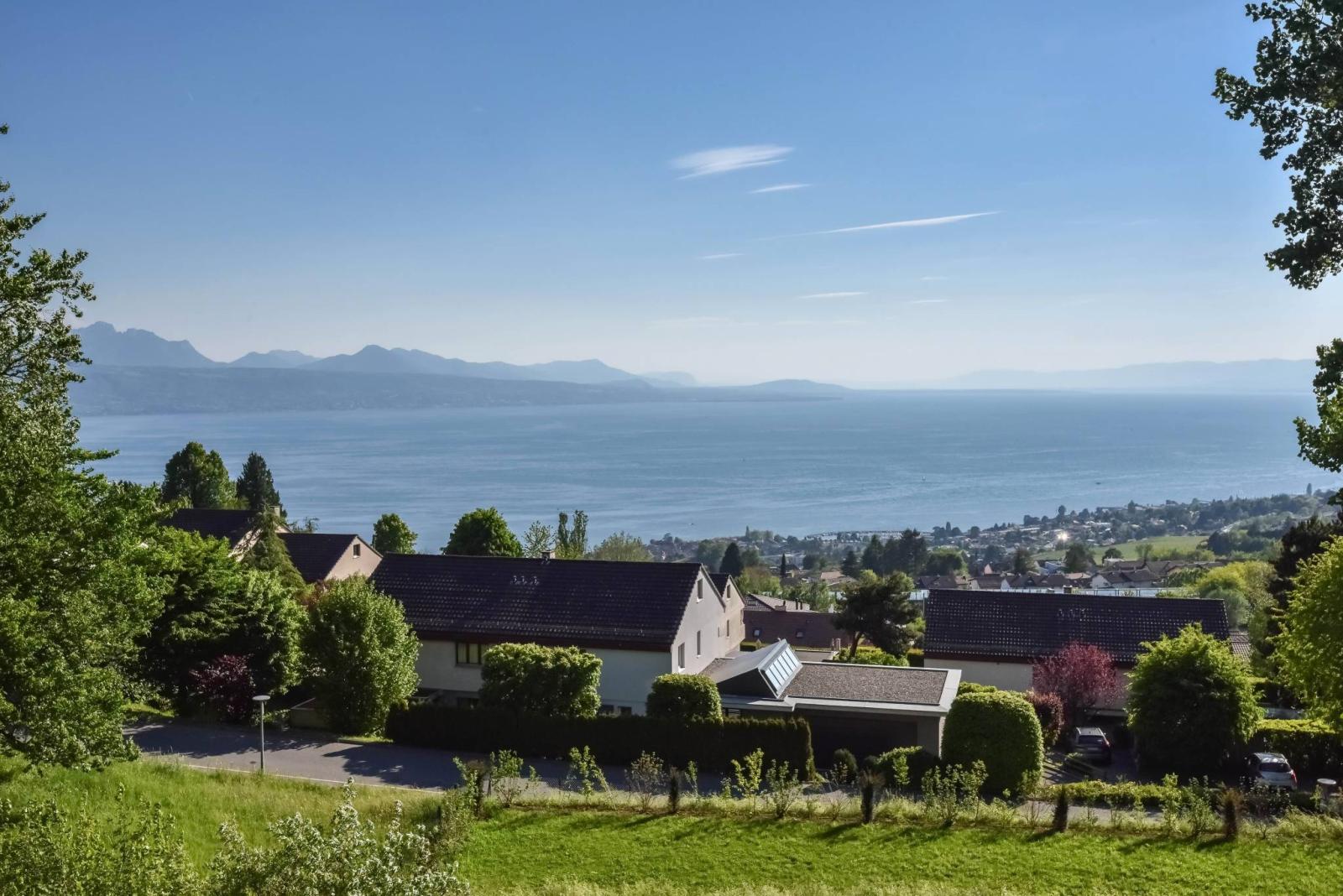 Édifiée en 1997 sur une parcelle d’environ 1’384 m², la villa développe environ 140 m² habitables et près de 200 m² de surface utile, répartis sur plusieurs niveaux. Son orientation sud-ouest et ses larges ouvertures lui permettent de profiter d’un ensoleillement optimal ainsi que d’une vue dégagée sur les montagnes, le lac et le Jura.