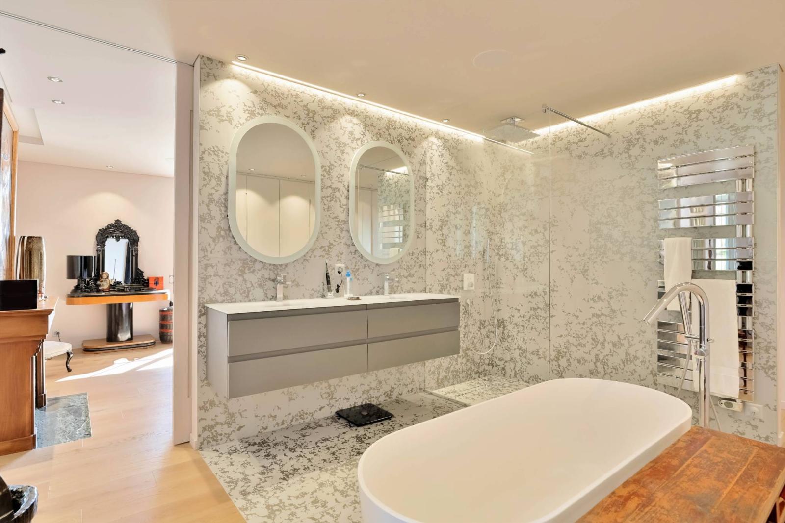 Le cœur du bien réside dans son univers bien-être : piscine intérieure, sauna, hammam, jacuzzi intérieur, ainsi qu’un second jacuzzi extérieur en terrasse. Dans le prolongement direct de la piscine, une terrasse au niveau inférieur a été aménagée comme un véritable lieu de réception, avec un second bar, offrant une atmosphère “resort” particulièrement rare pour une résidence privée. Un WC séparé complète ce niveau, situé dans la pièce du jacuzzi.