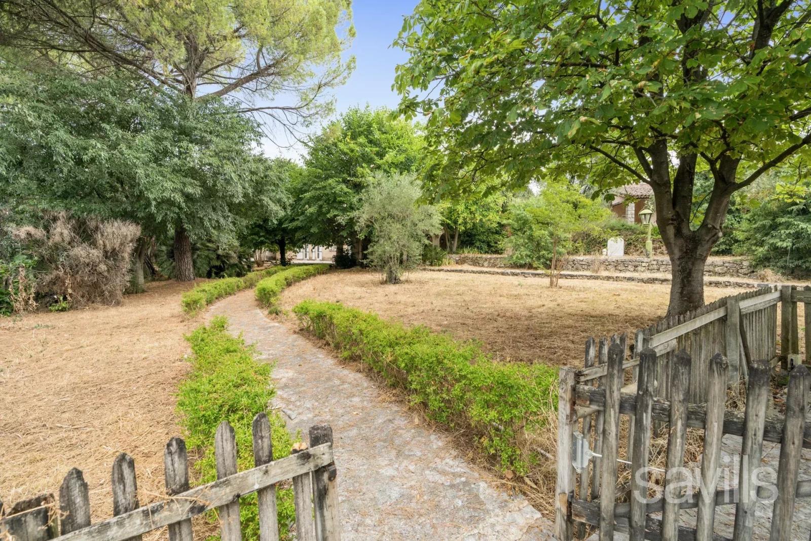 À l’écart, sur 3 615 m², la maison du personnel de trois chambres dispose d’un accès privé par portail automatique.