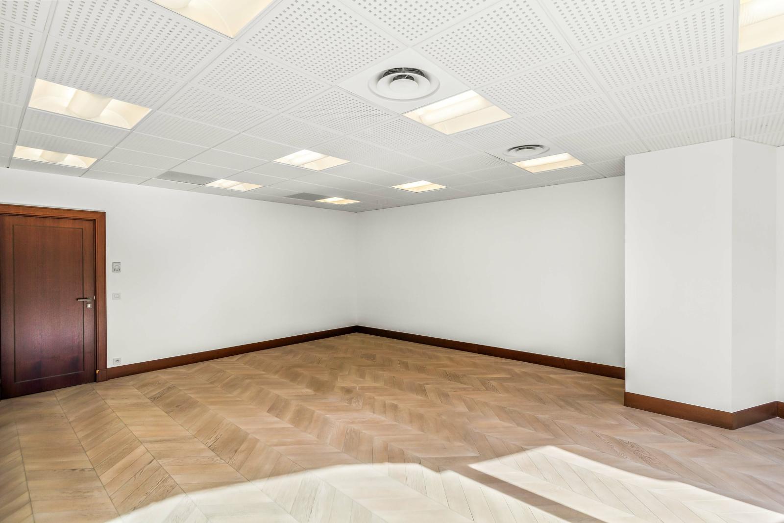 Au sein d'un immeuble avec concierges et ascenseur, ce grand bureau est composé d'un bureau d'accueil et de différents espaces de travail, des toilettes hommes et femmes, une kitchenette et un espace serveur.